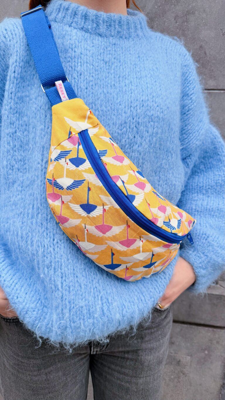 Cette banane est confectionnée à partir de tissus de seconde main, pouvant présenter de légères traces d’usure, témoins de son histoire. Elle est souvent réalisée avec des chutes de tissus des créations Retro Reset, dans une démarche de réduction des déchets.