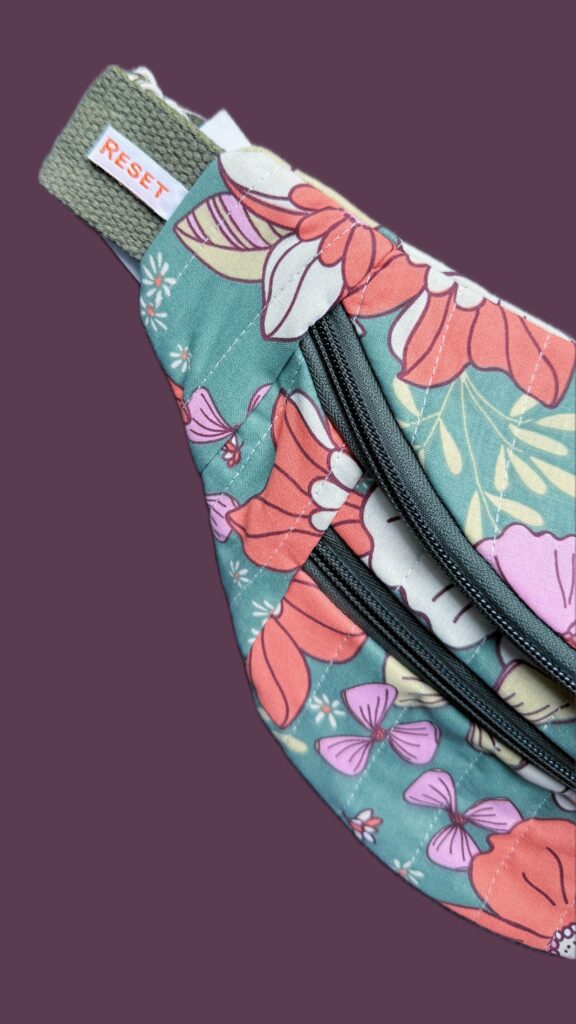Cette banane est confectionnée à partir de tissus de seconde main, pouvant présenter de légères traces d’usure, témoins de son histoire. Elle est souvent réalisée avec des chutes de tissus des créations Retro Reset, dans une démarche de réduction des déchets.