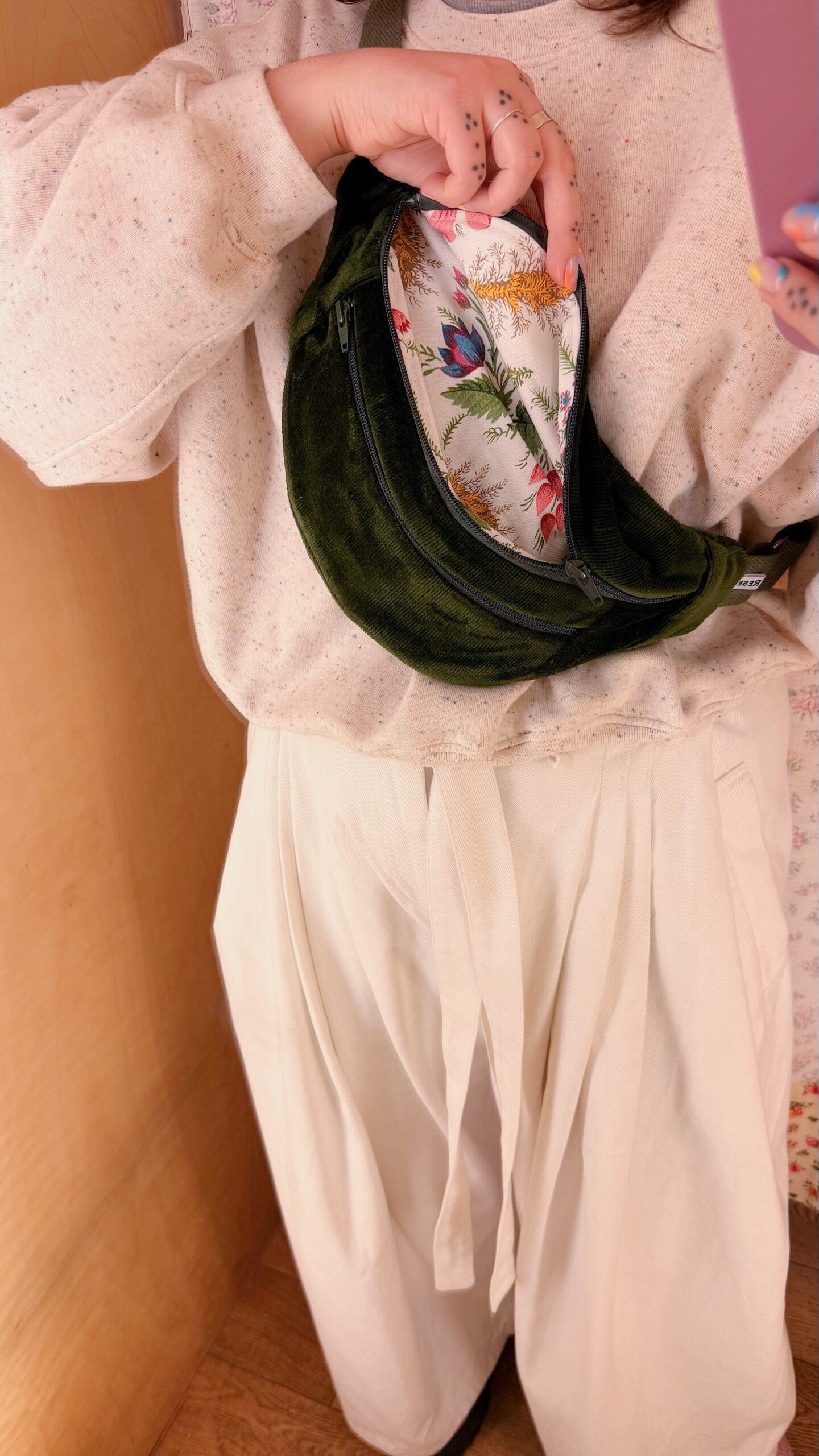 La banane médium combine style et durabilité, réalisée en tissus de seconde main. Produite en Belgique dans une démarche locale et écoresponsable, elle est idéale pour garder vos essentiels à portée de main tout en respectant l’environnement ♡