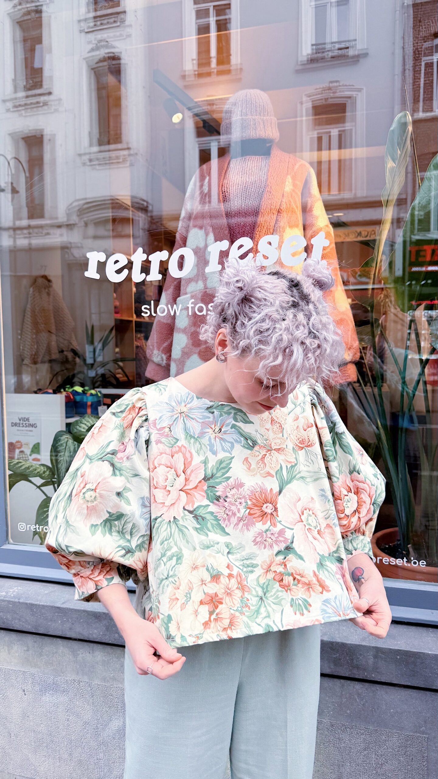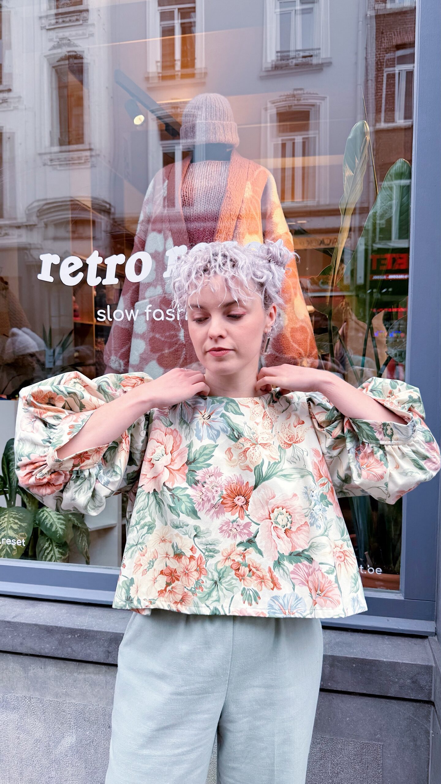 La blouse ballon présente une coupe oversize crop top, idéale à associer avec un bas taille haute. Elle s’enfile par la tête et ne possède pas de fermeture dans le dos. Les manches ballon sont volumineuses, et leur volume varie selon l’épaisseur du tissu ♡