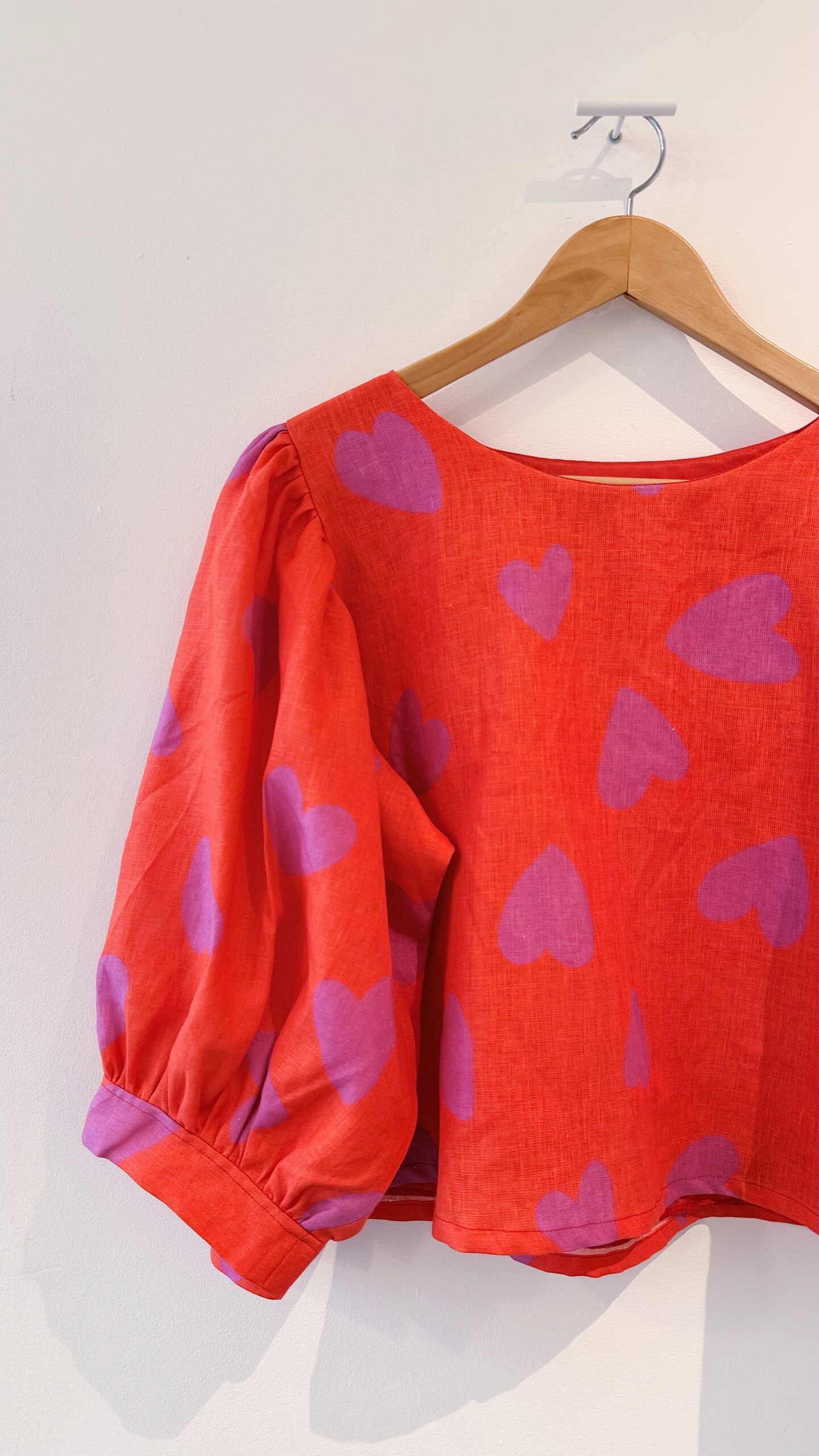 La blouse ballon présente une coupe oversize crop top, idéale à associer avec un bas taille haute. Elle s’enfile par la tête et ne possède pas de fermeture dans le dos. Les manches ballon sont volumineuses, et leur volume varie selon l’épaisseur du tissu ♡