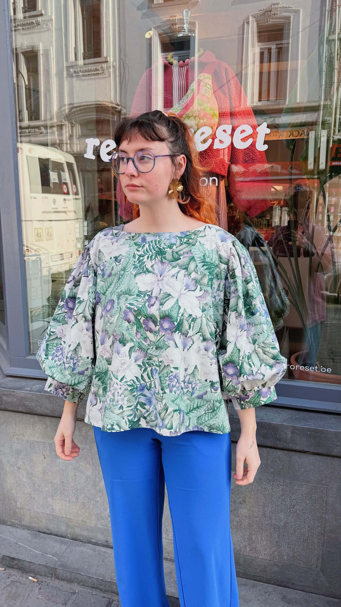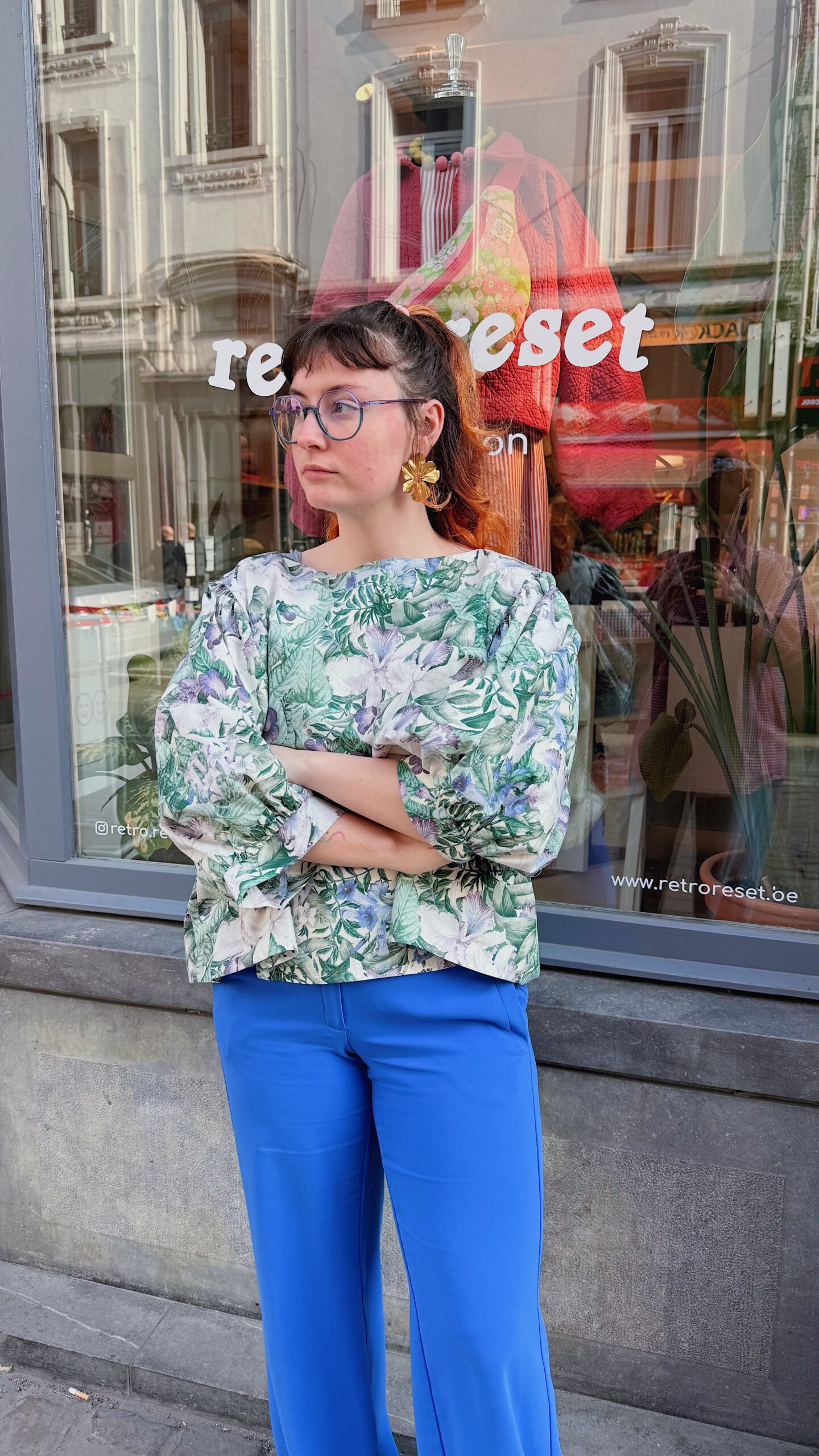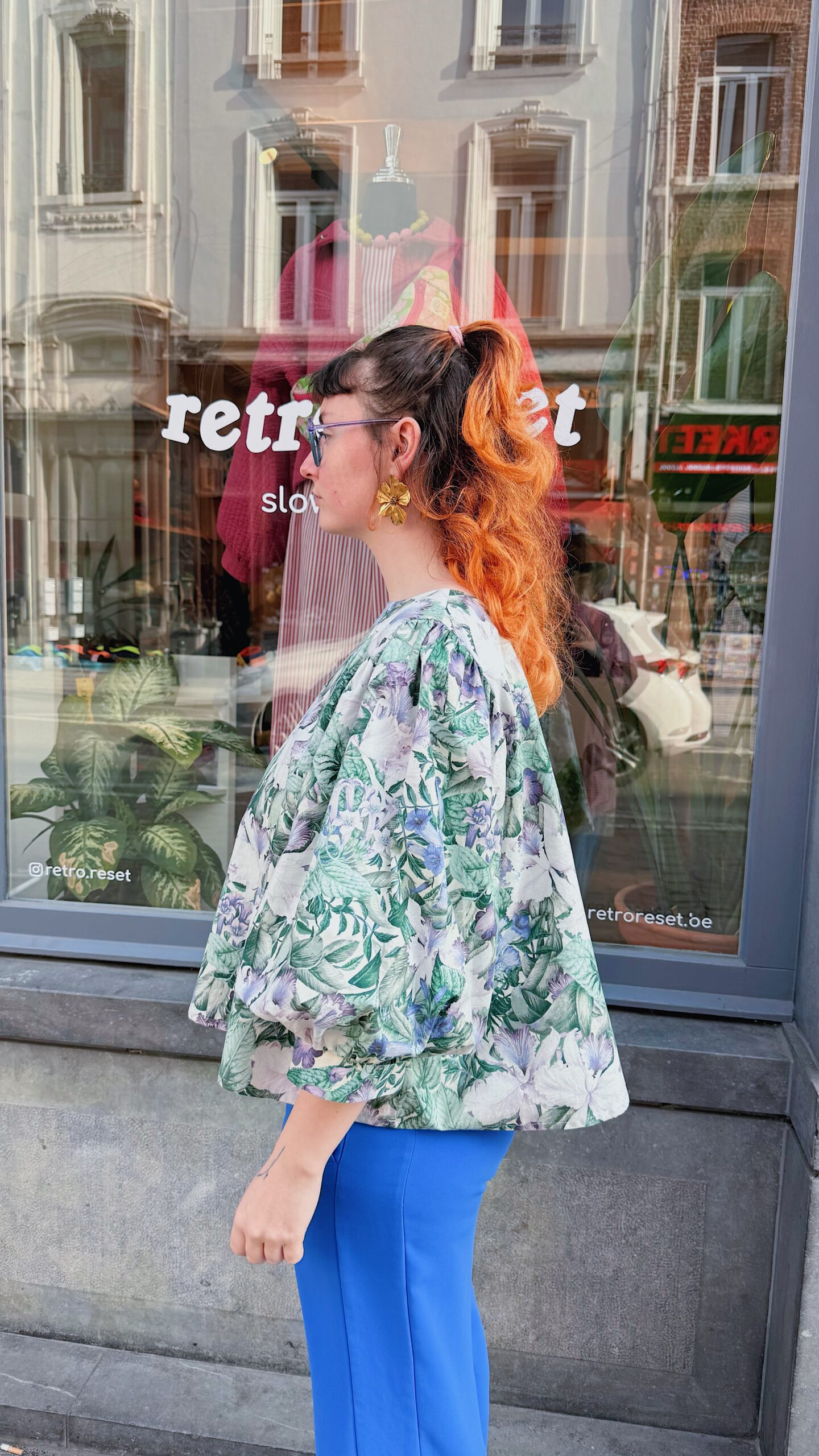 La blouse ballon présente une coupe oversize crop top, idéale à associer avec un bas taille haute. Elle s’enfile par la tête et ne possède pas de fermeture dans le dos. Les manches ballon sont volumineuses, et leur volume varie selon l’épaisseur du tissu ♡