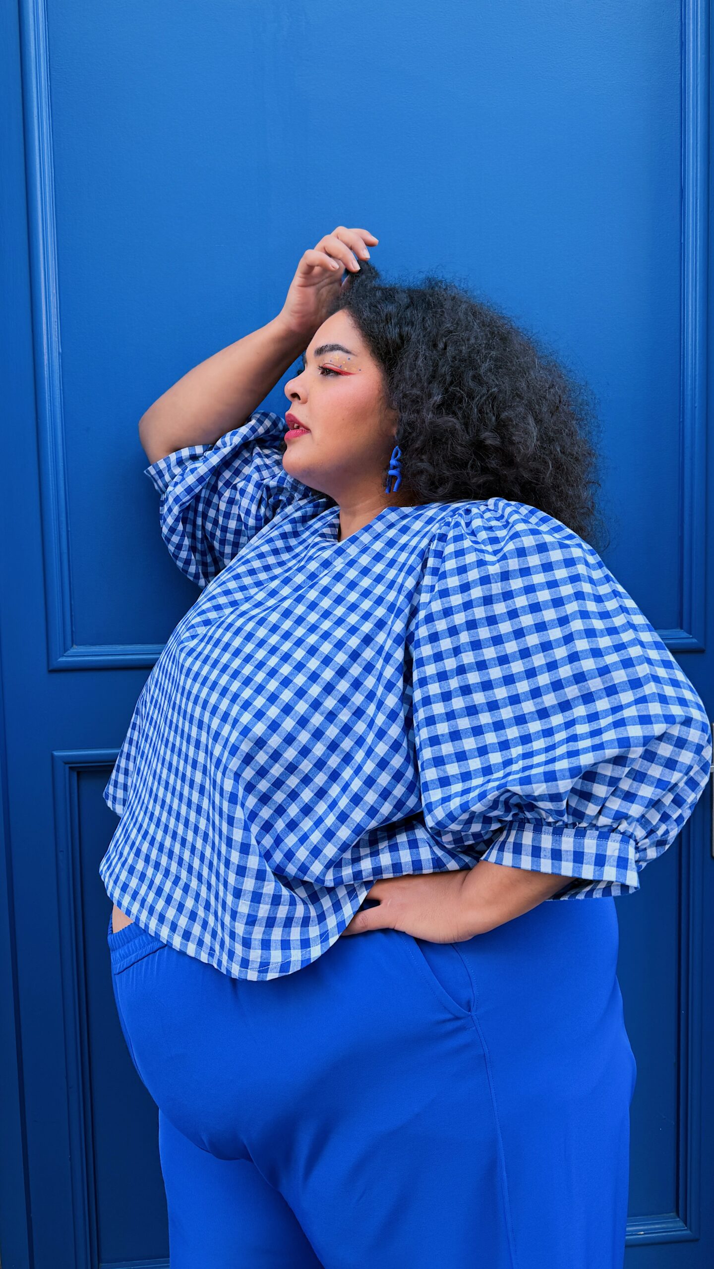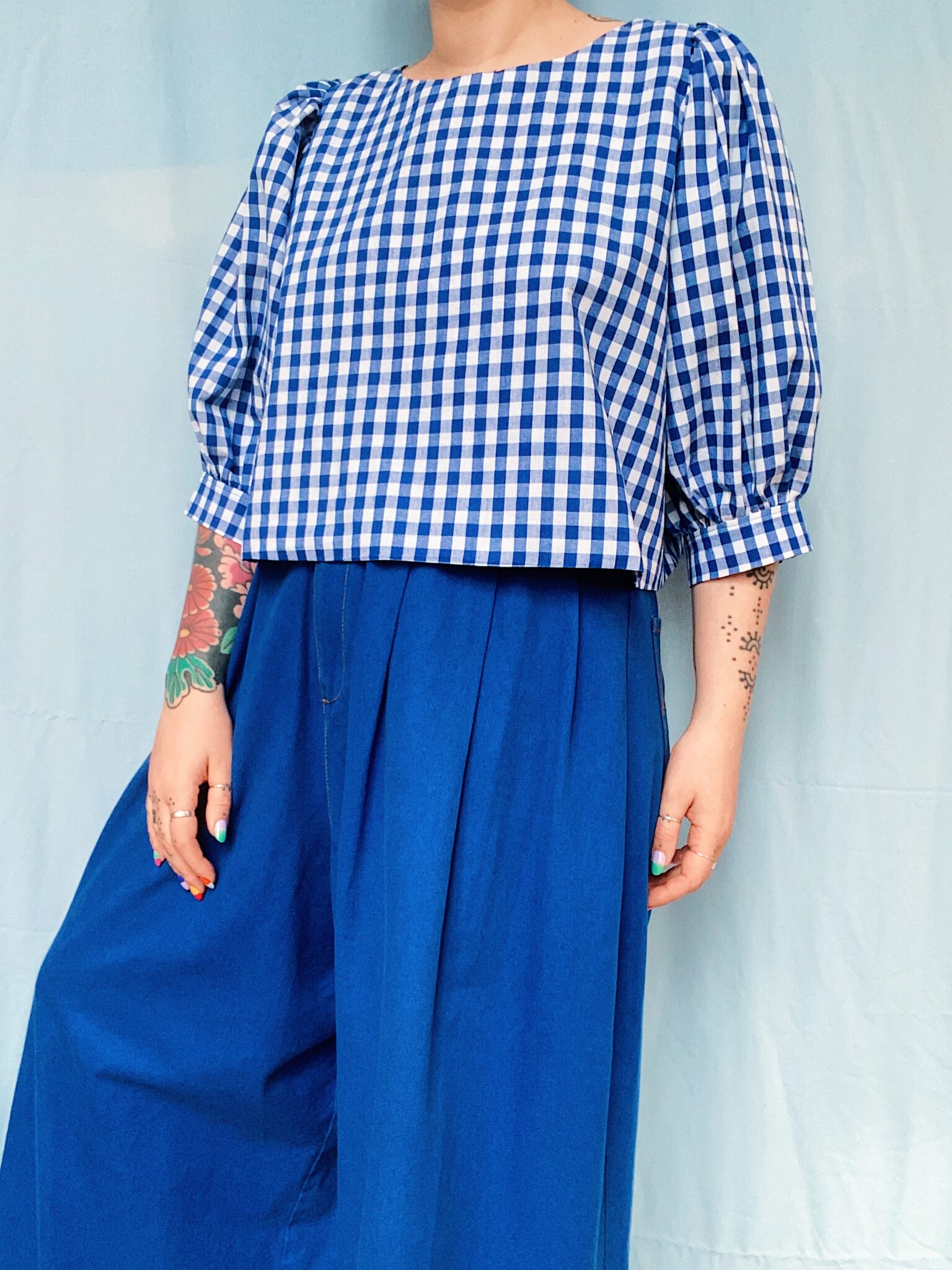 La blouse ballon présente une coupe oversize crop top, idéale à associer avec un bas taille haute. Elle s’enfile par la tête et ne possède pas de fermeture dans le dos. Les manches ballon sont volumineuses, et leur volume varie selon l’épaisseur du tissu ♡