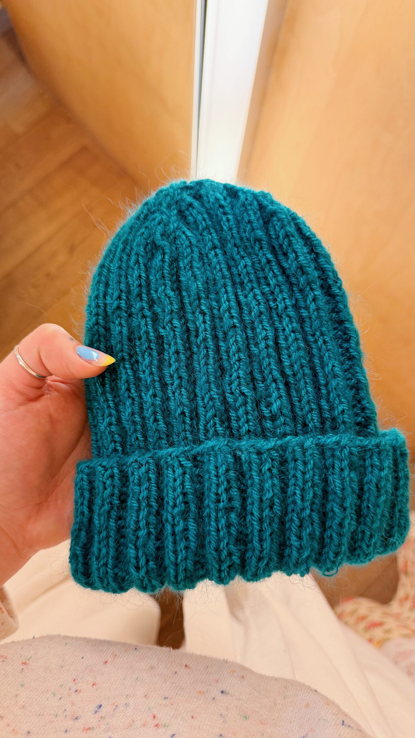 La maille confectionné par ma maman, Anne, en Belgique, à Louvain-la-Neuve, à travers son projet fingersinthewool. Elle retravaille des laines de récupération, après avoir rassemblé suffisamment de pelotes dans les couleurs qui l’inspirent. Ces pièces uniques prennent forme pour des looks toujours plus colorés ! Étant fabriqué à partir de laine de récupération, il est très souvent impossible de retracer précisément la composition d’origine des fils utilisés.