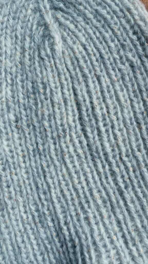La maille confectionné par ma maman, Anne, en Belgique, à Louvain-la-Neuve, à travers son projet fingersinthewool. Elle retravaille des laines de récupération, après avoir rassemblé suffisamment de pelotes dans les couleurs qui l’inspirent. Ces pièces uniques prennent forme pour des looks toujours plus colorés ! Étant fabriqué à partir de laine de récupération, il est très souvent impossible de retracer précisément la composition d’origine des fils utilisés.