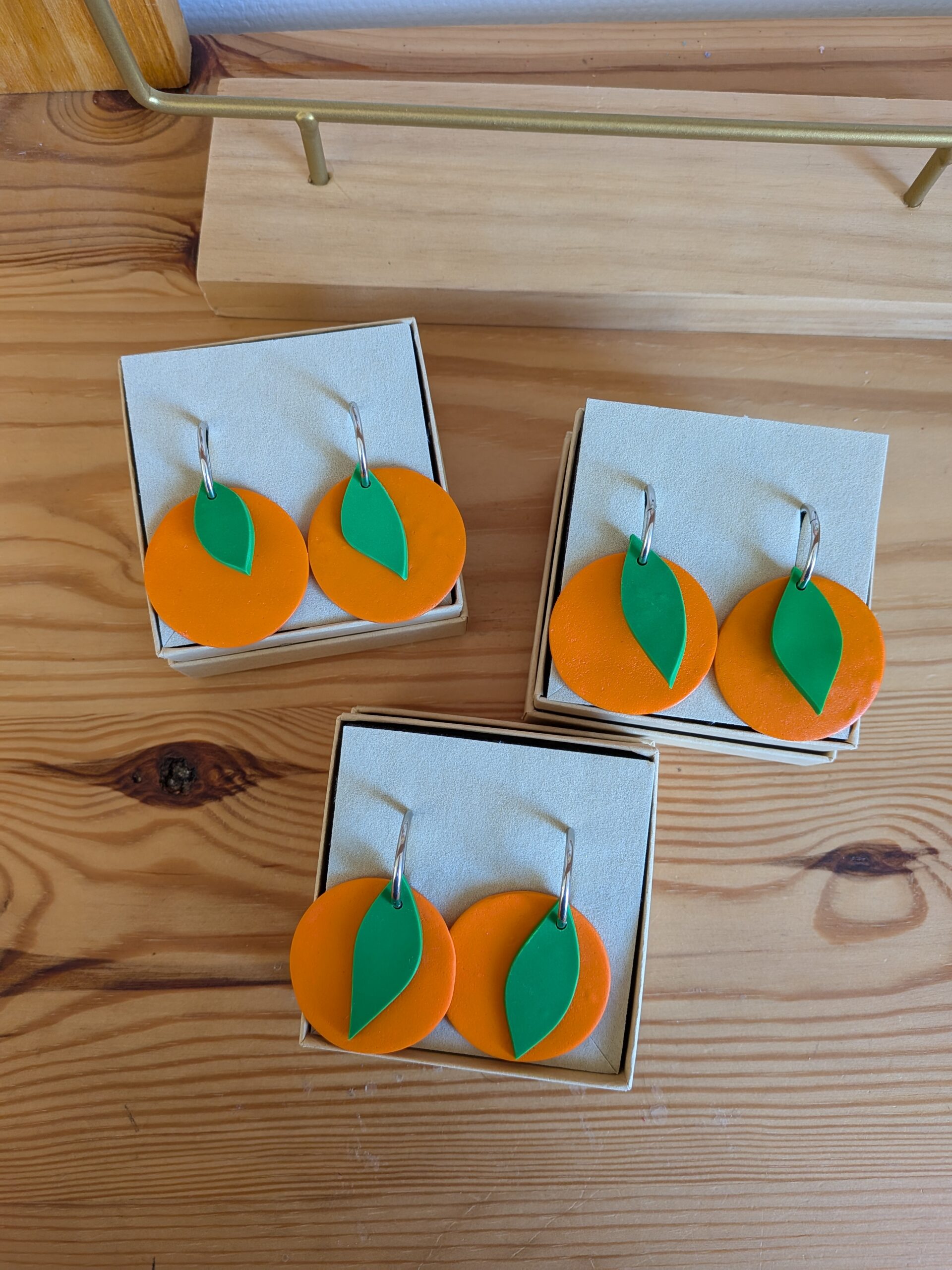 Les boucles d’oreilles sont réalisées à la main par Roxane dans son atelier à Lorient (France). Elles sont toutes montées en argile polymère de la marque « Fimo », fabriquée en Allemagne.