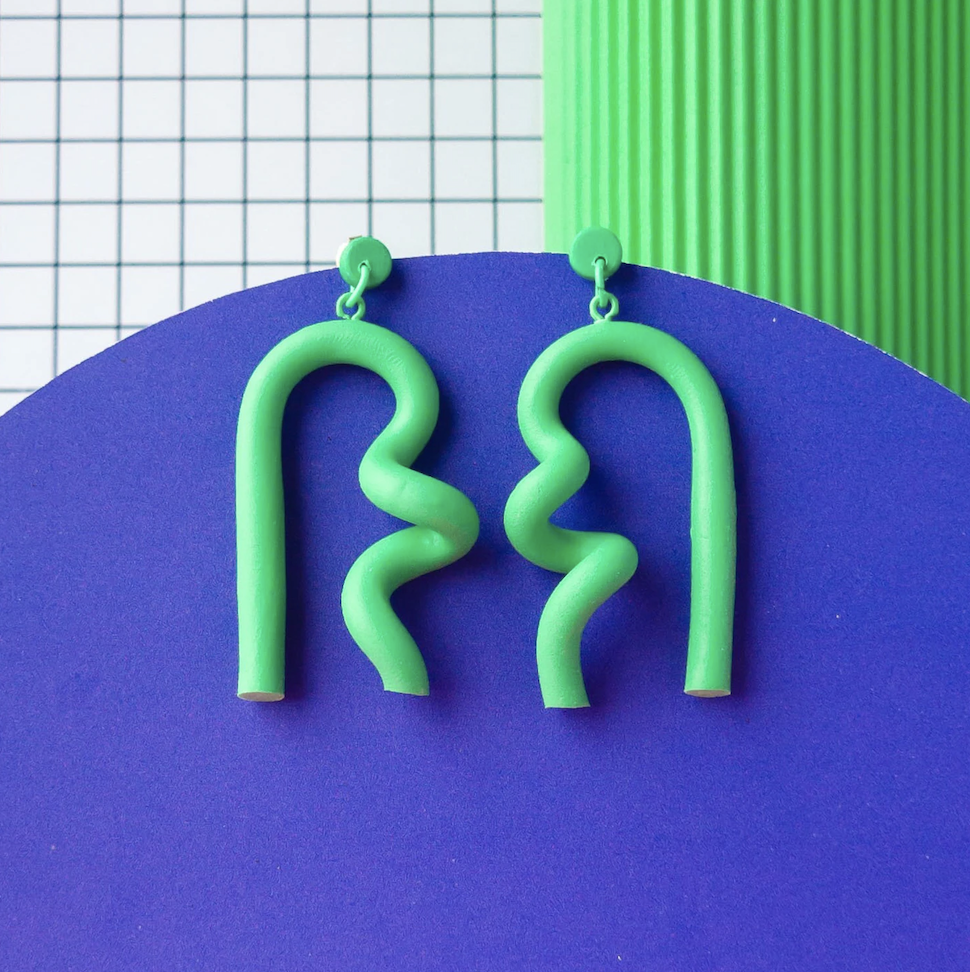 Boucles d’oreilles en argile polymère, faites à la main à Gand par Myra.