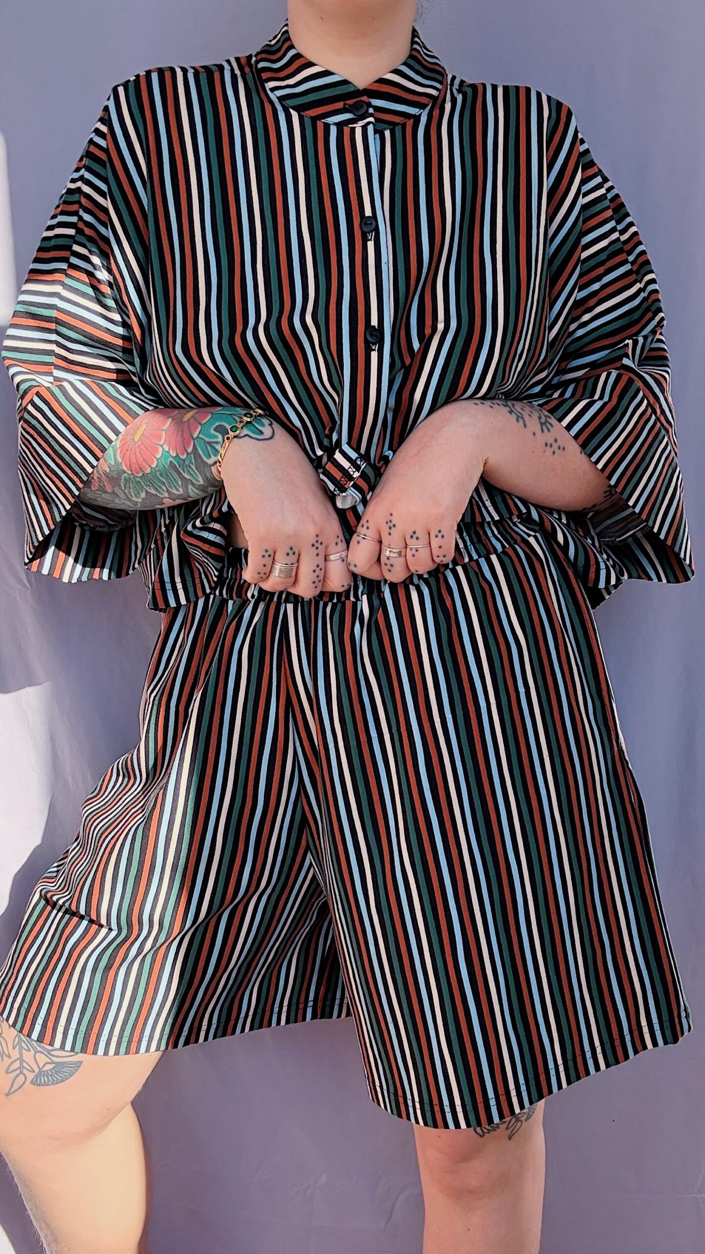 La chemise carrée courte est une coupe oversize, pouvant se porter fermée, légèrement ouverte pour un joli décolleté, ou encore totalement ouverte comme un petit gilet d’été ♡