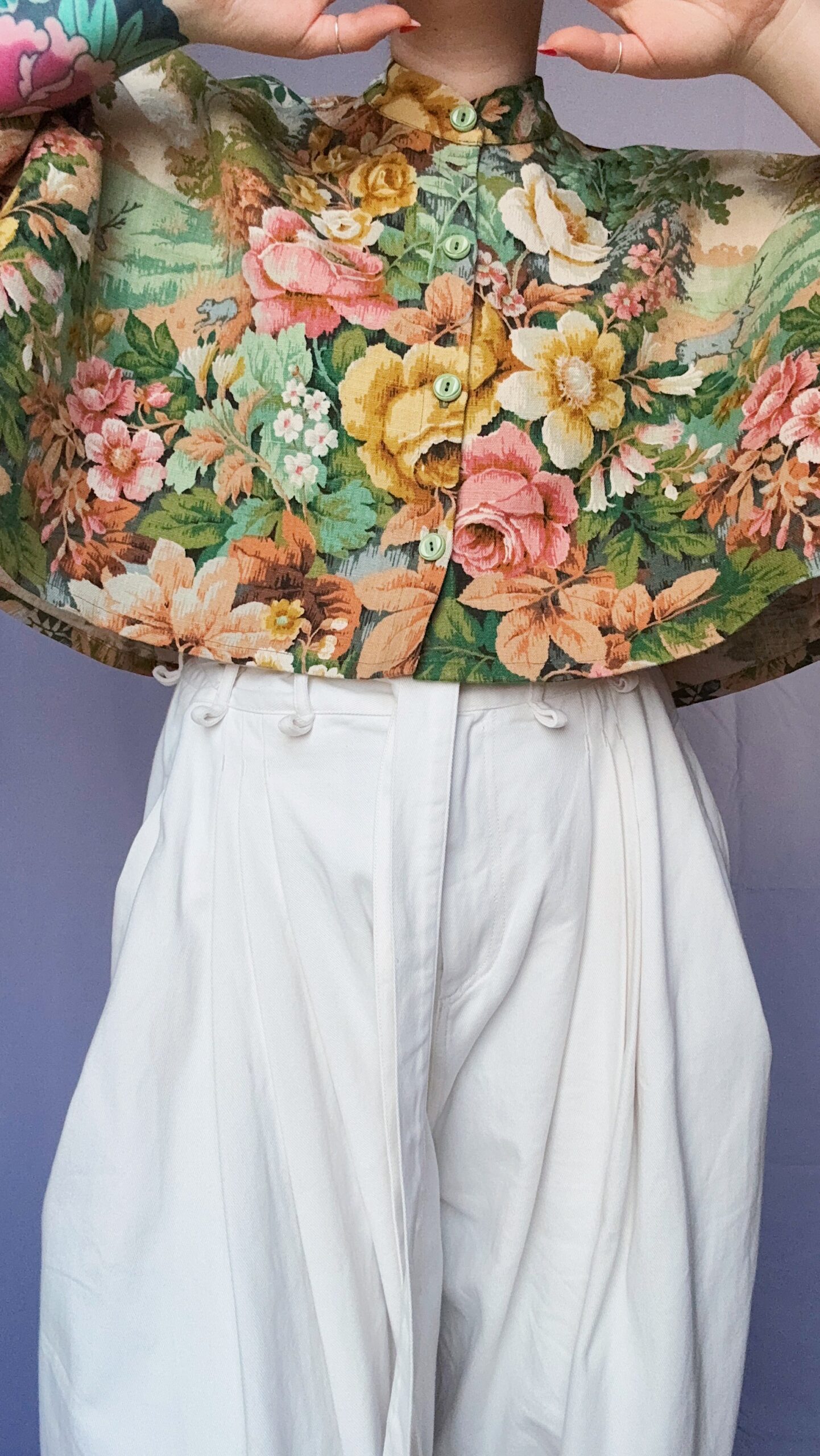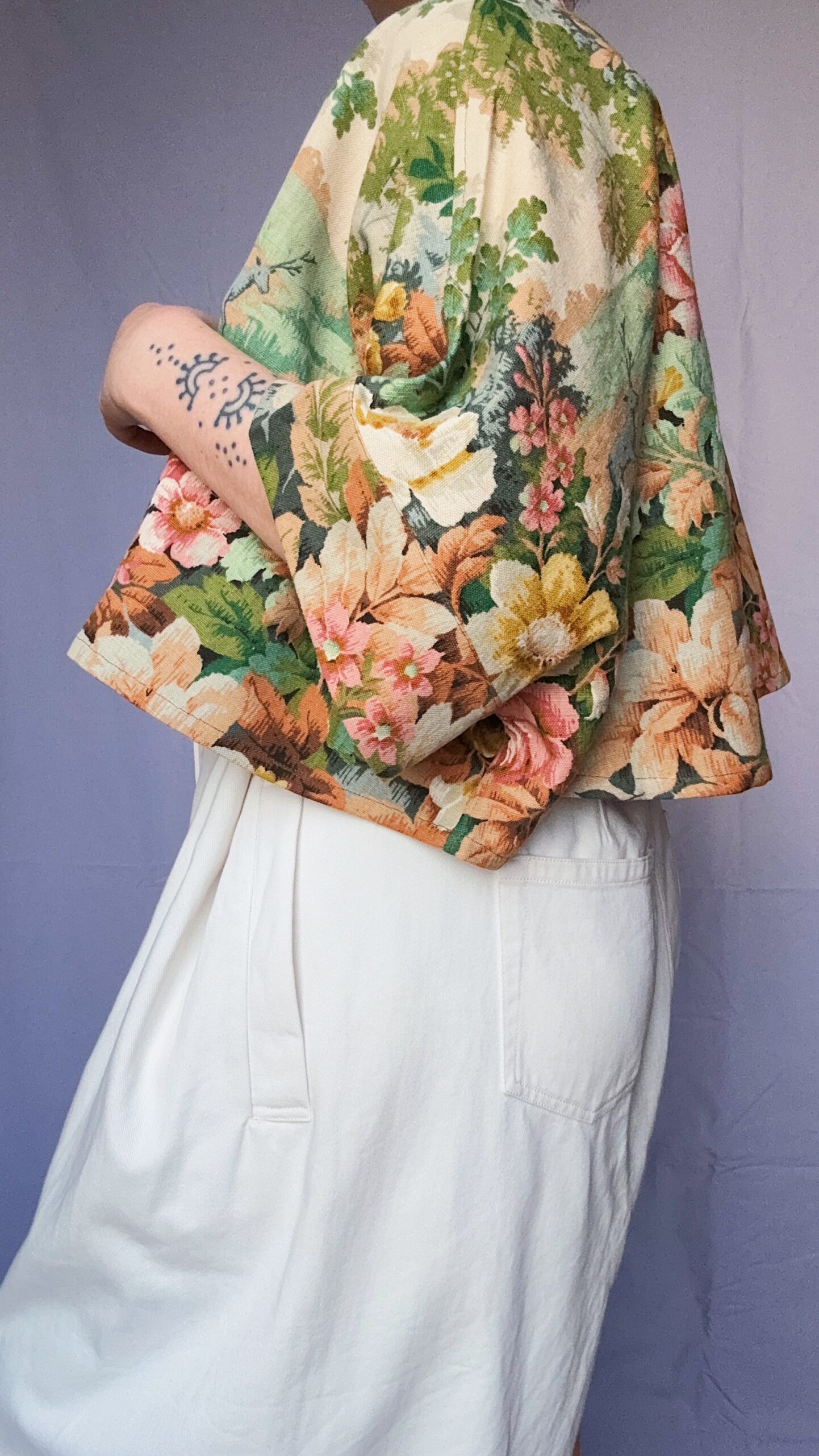 La chemise carrée courte est une coupe oversize, pouvant se porter fermée, légèrement ouverte pour un joli décolleté, ou encore totalement ouverte comme un petit gilet d’été ♡