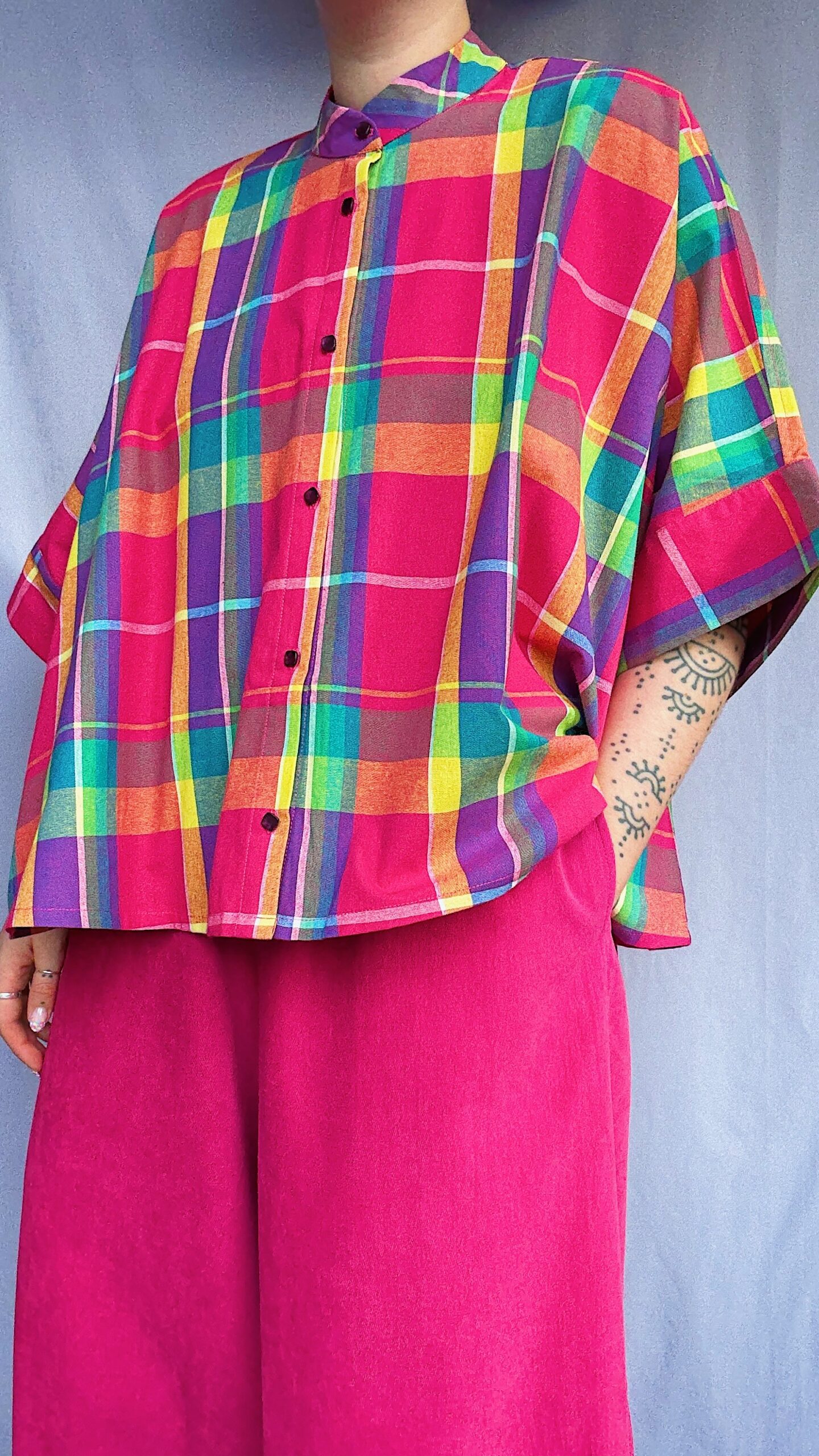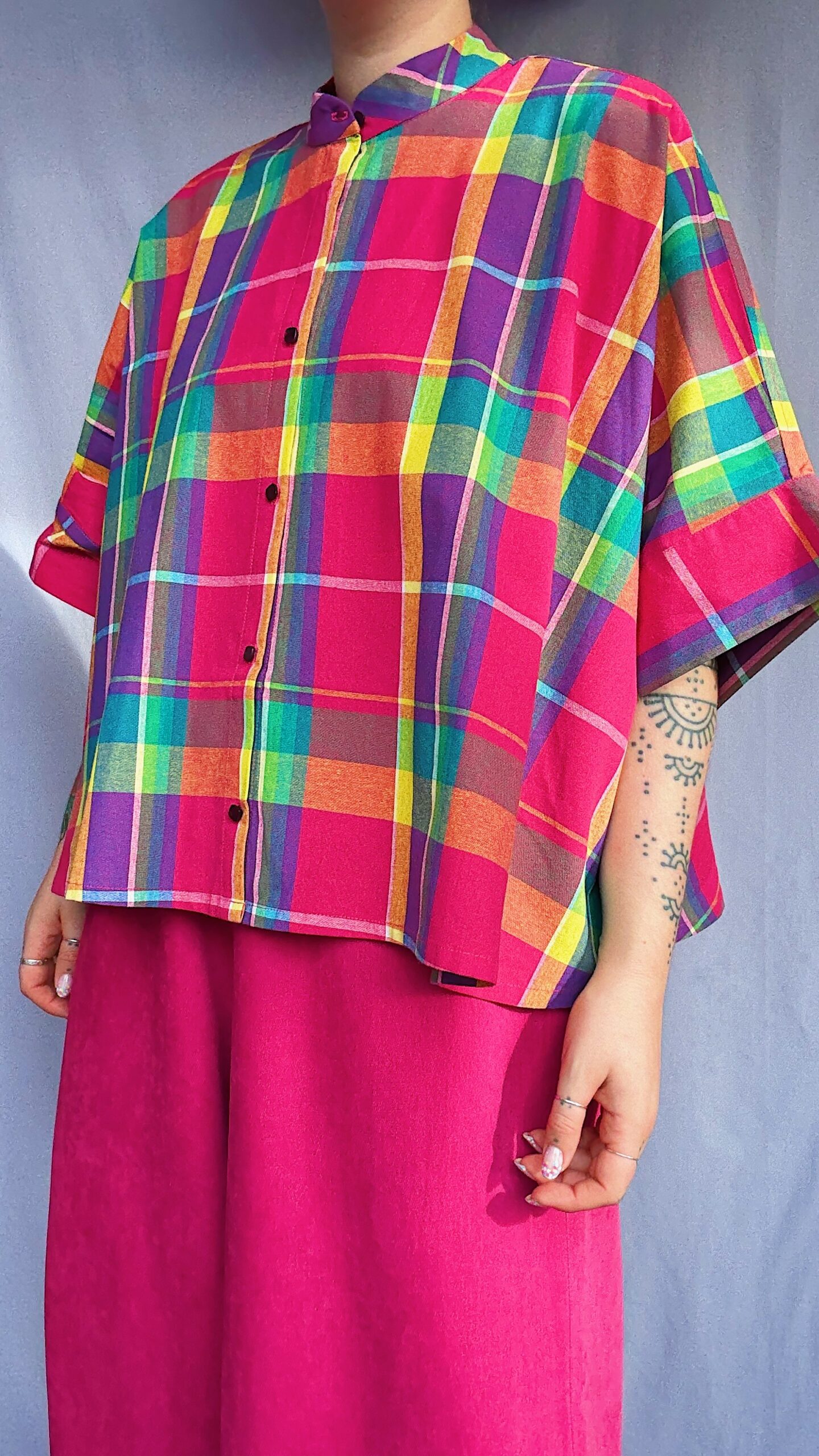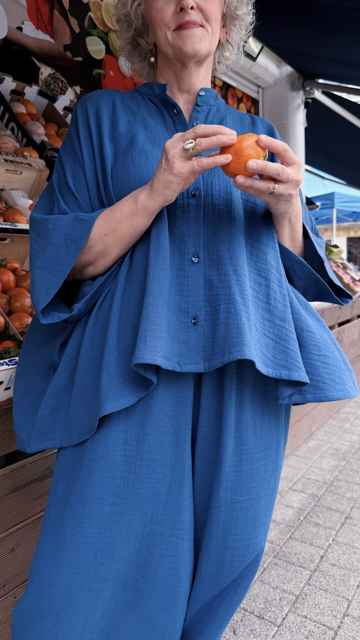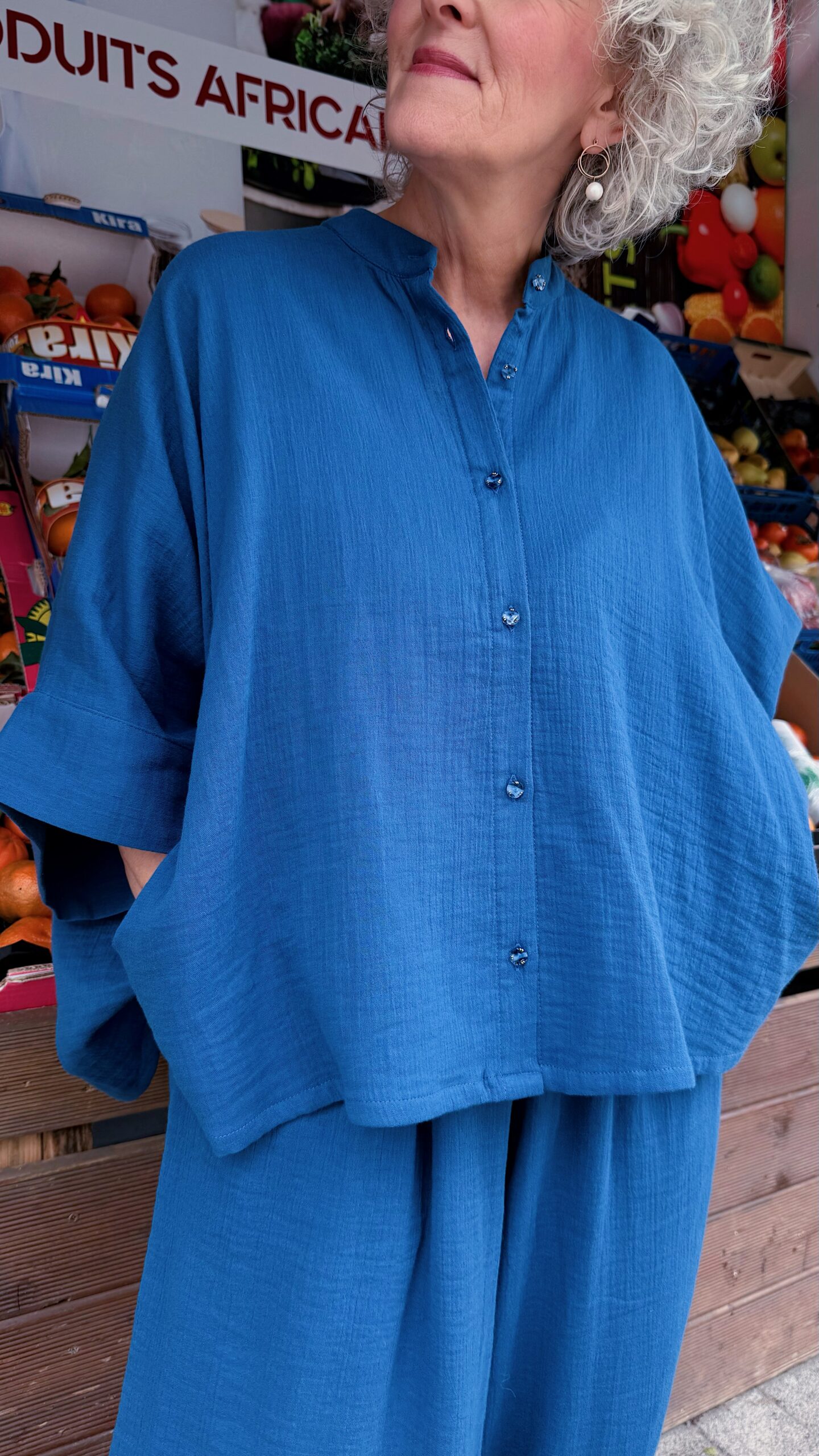 La chemise carrée est une coupe oversize unisexe, pouvant se porter fermée, légèrement ouverte pour un joli décolleté, ou encore totalement ouverte comme un petit gilet d’été !