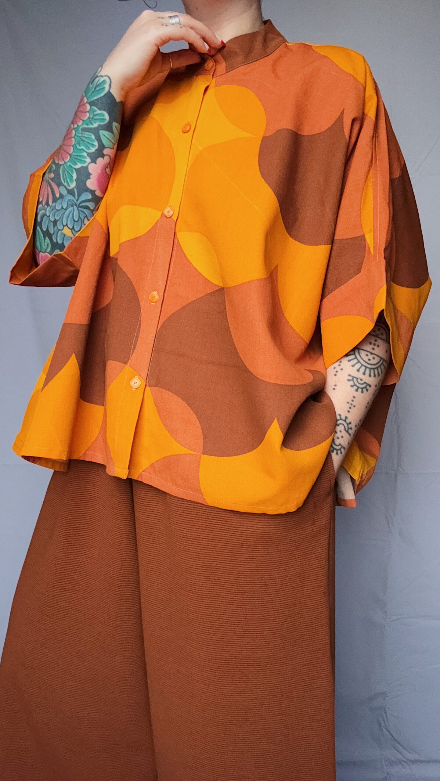 La chemise carrée est une coupe oversize unisexe, pouvant se porter fermée, légèrement ouverte pour un joli décolleté, ou encore totalement ouverte comme un petit gilet d’été !