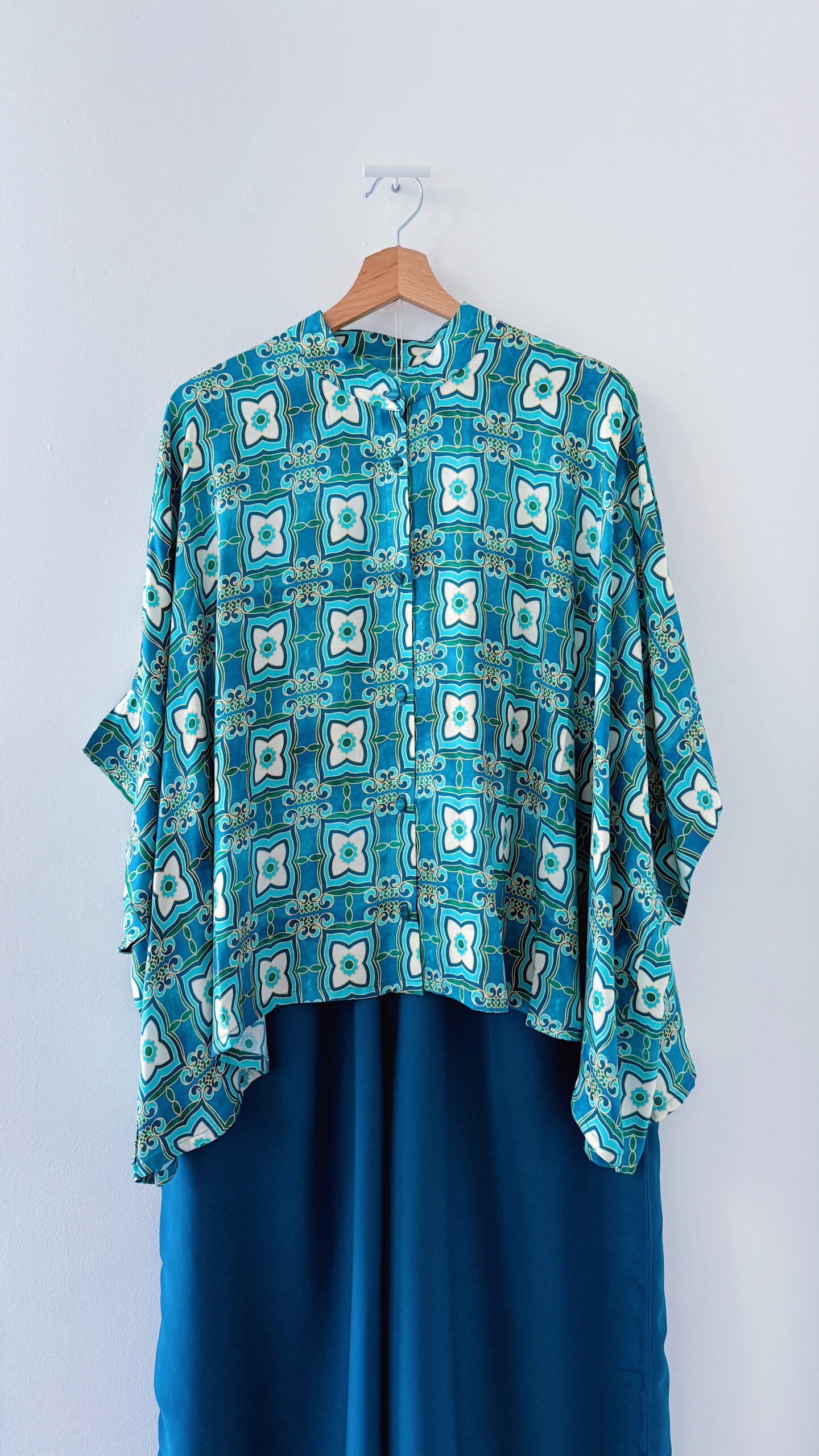 La chemise carrée est une coupe oversize unisexe, pouvant se porter fermée, légèrement ouverte pour un joli décolleté, ou encore totalement ouverte comme un petit gilet d’été !