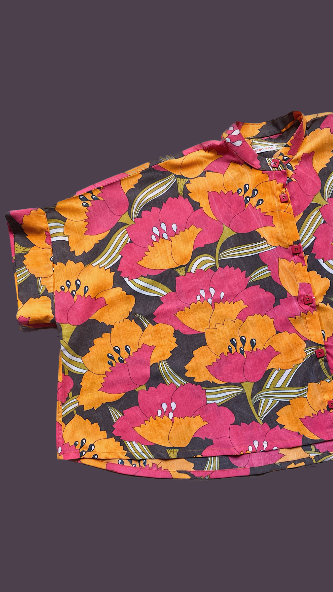 La chemise carrée est une coupe oversize unisexe, pouvant se porter fermée, légèrement ouverte pour un joli décolleté, ou encore totalement ouverte comme un petit gilet d’été !