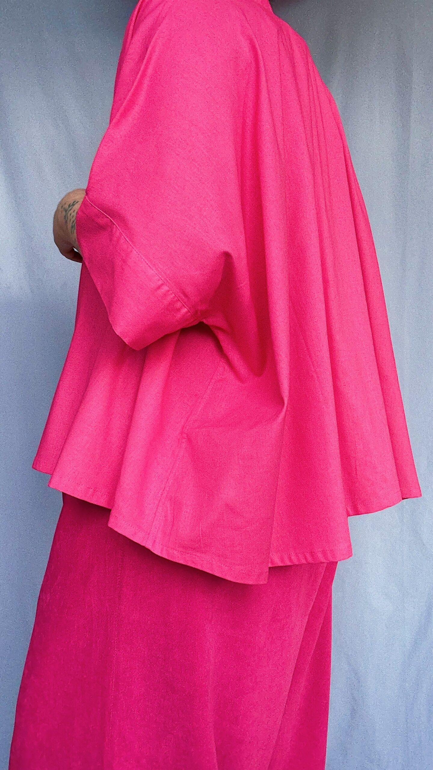 La chemise carrée est une coupe oversize unisexe, pouvant se porter fermée, légèrement ouverte pour un joli décolleté, ou encore totalement ouverte comme un petit gilet d’été !