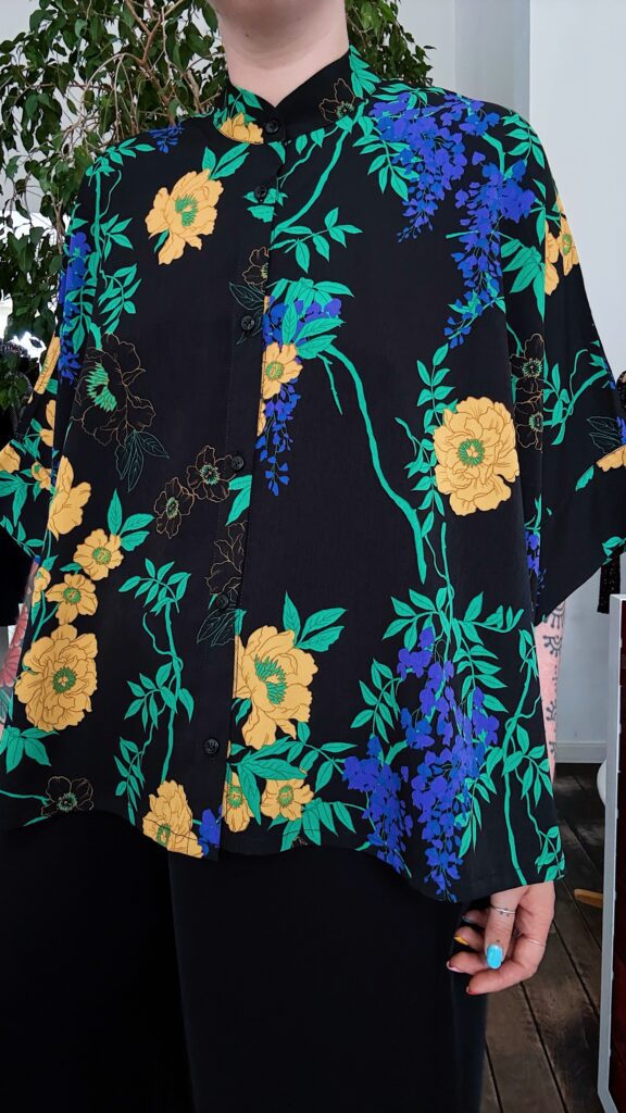 La chemise carrée est une coupe oversize unisexe, pouvant se porter fermée, légèrement ouverte pour un joli décolleté, ou encore totalement ouverte comme un petit gilet d’été !