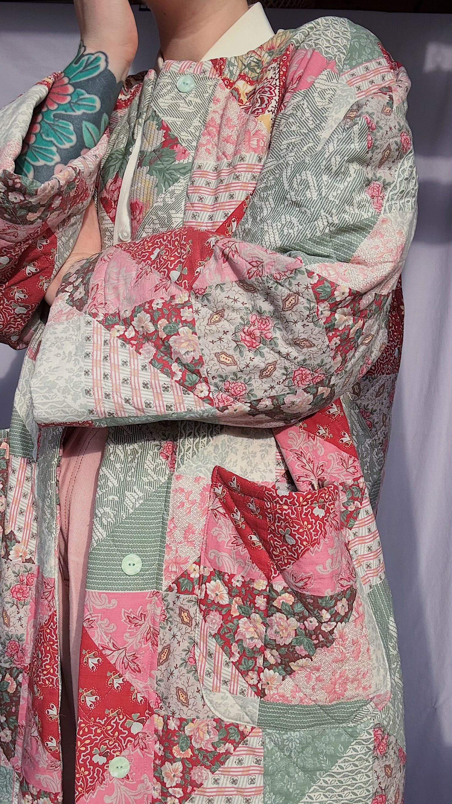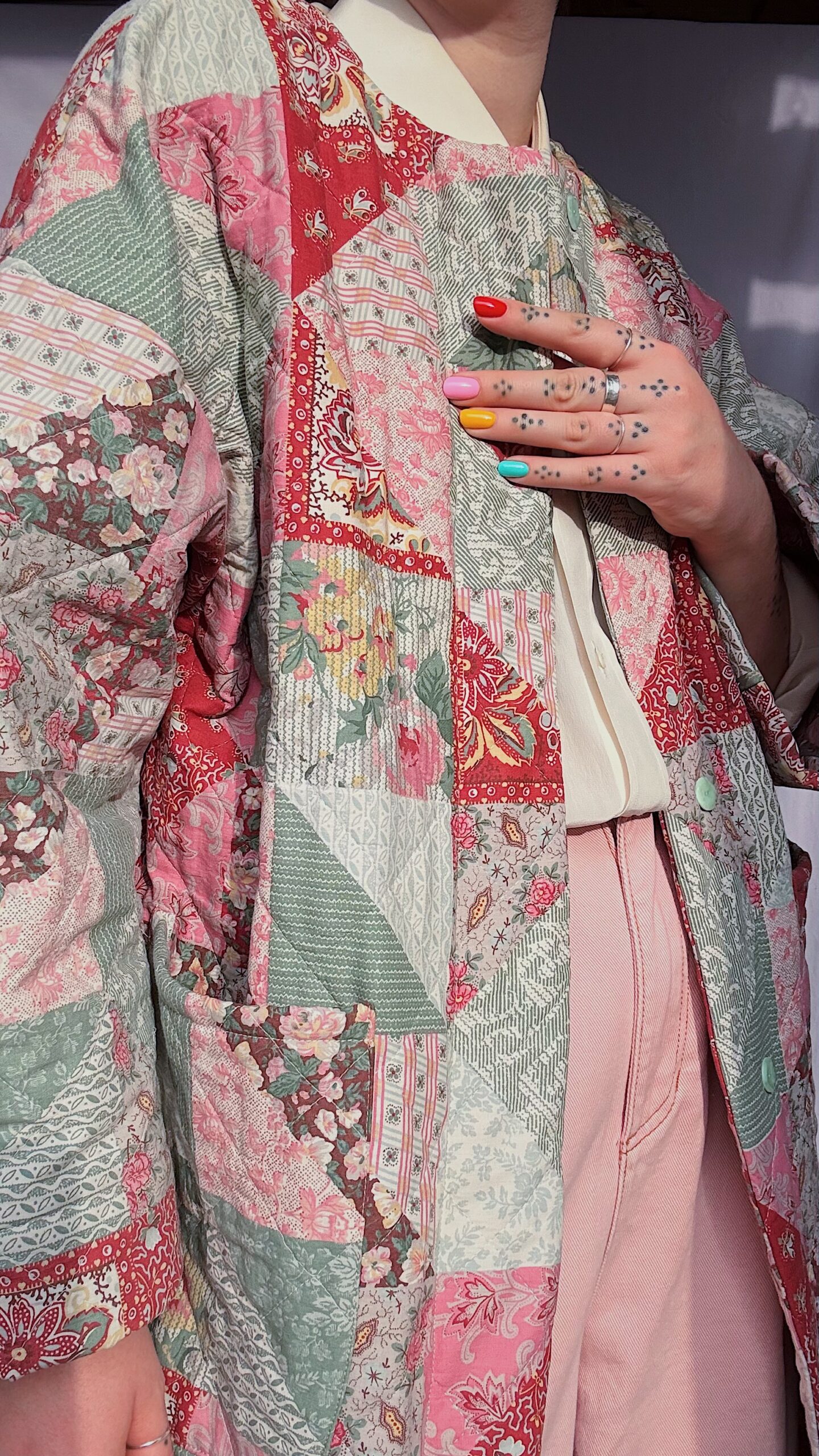 Les vestes sont confectionnées à partir d’anciennes couvertures ou tissus, leur conférant un caractère unique !