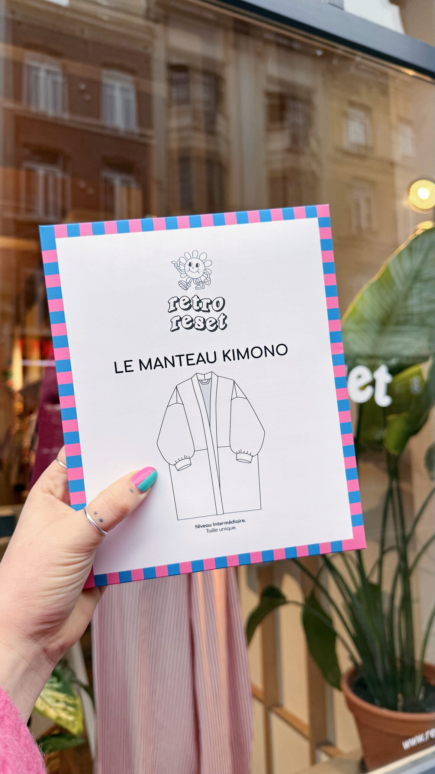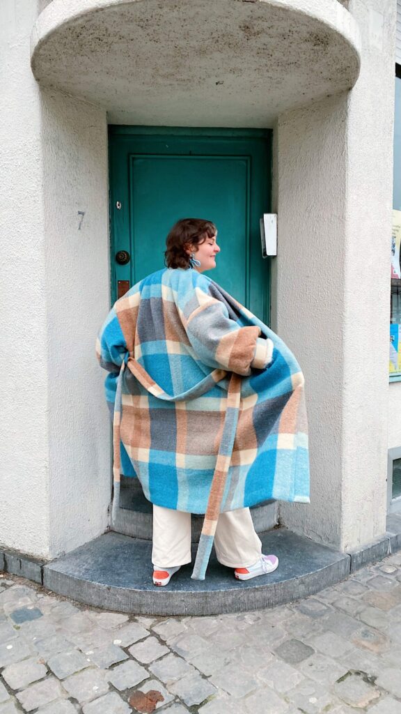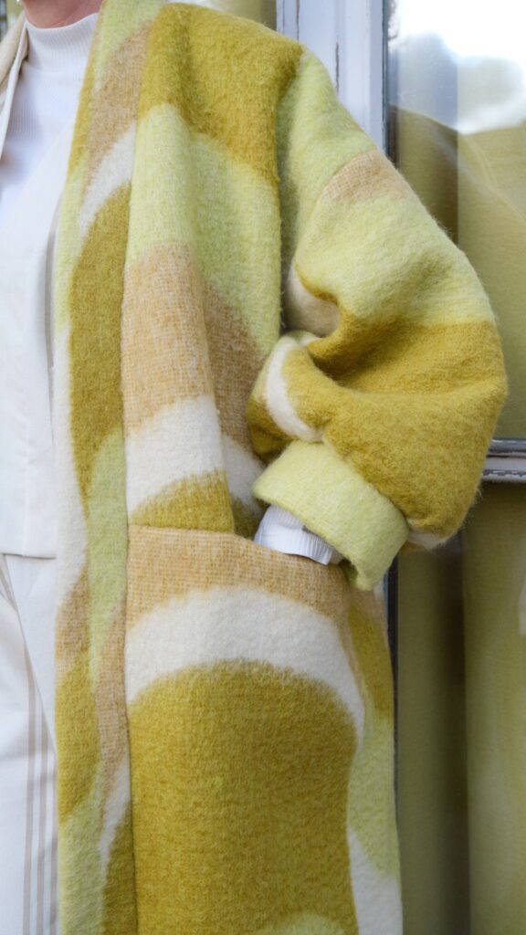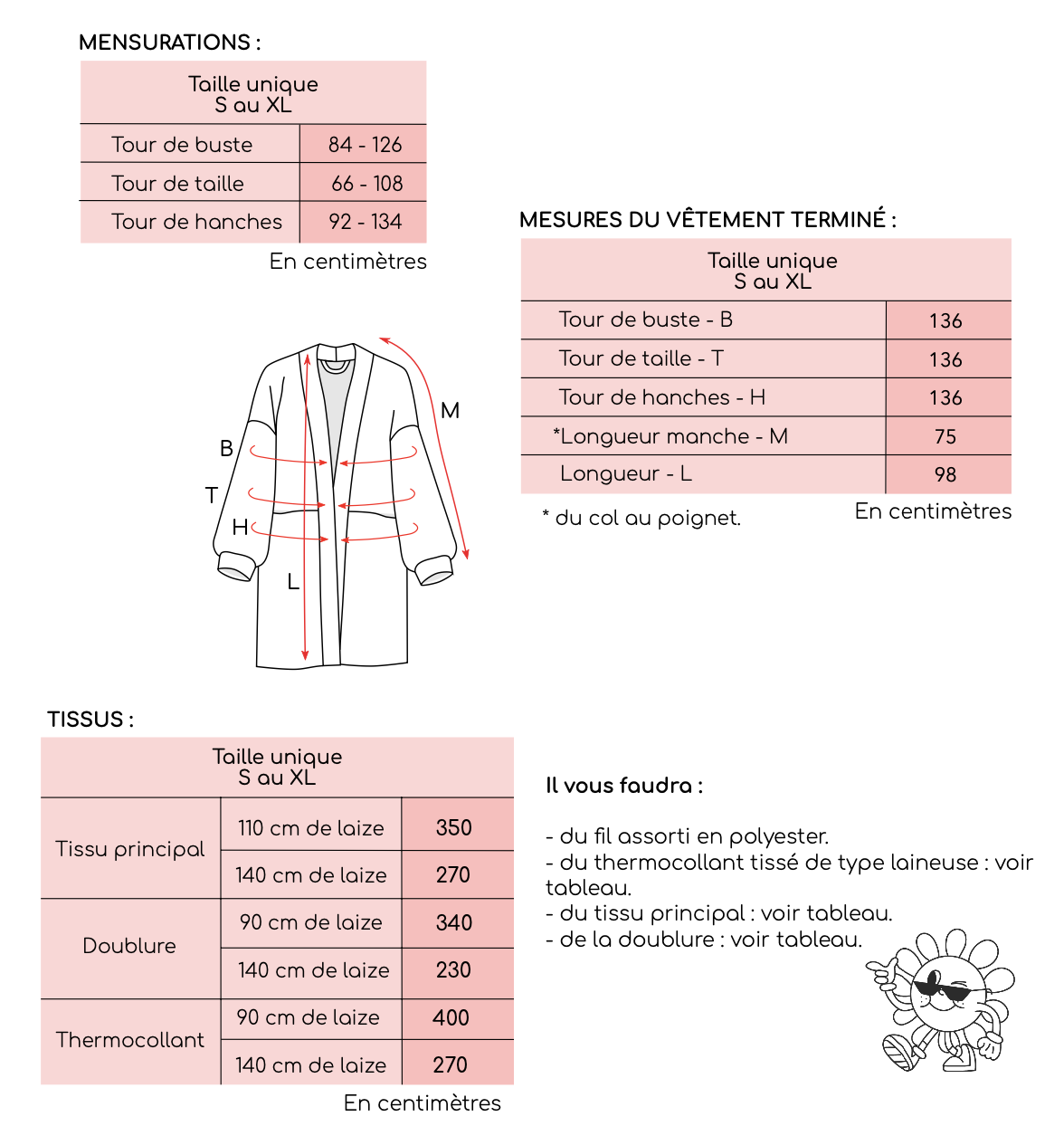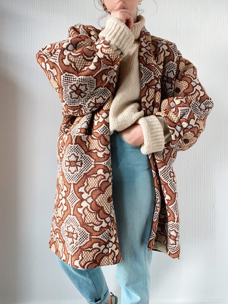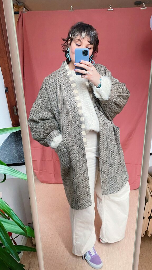 Le manteau kimono Retro Reset est un modèle unisexe en taille unique, mais tu peux allonger ou diminuer la longueur du corps et des bras pour les adapter à tes mensurations ♡