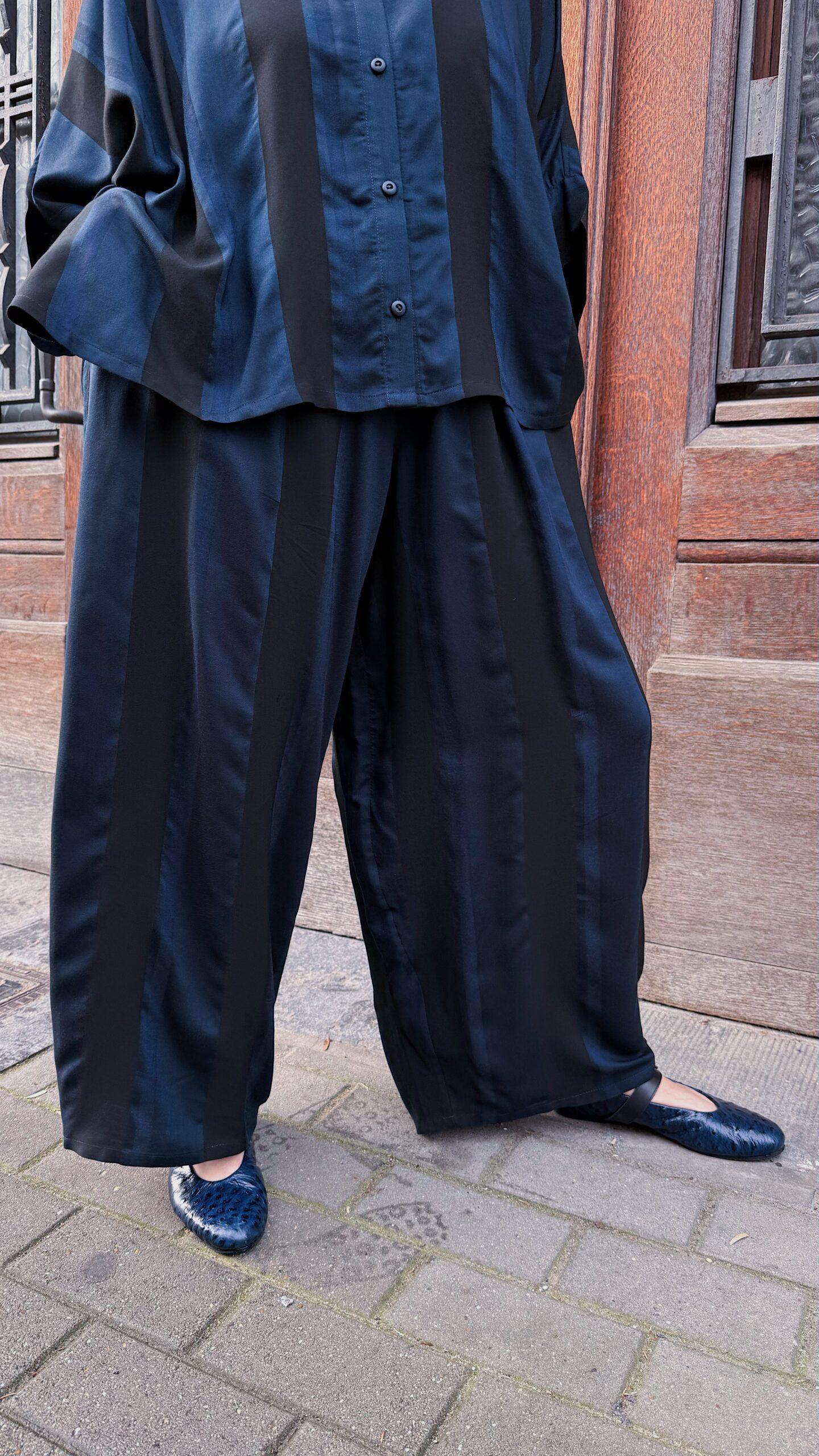 Les pantalons sont réalisés à partir de deadstock et/ou de tissus de seconde main, ce qui leur confère un caractère unique ! Cela ne me permet pas toujours d’en connaître la composition exacte.