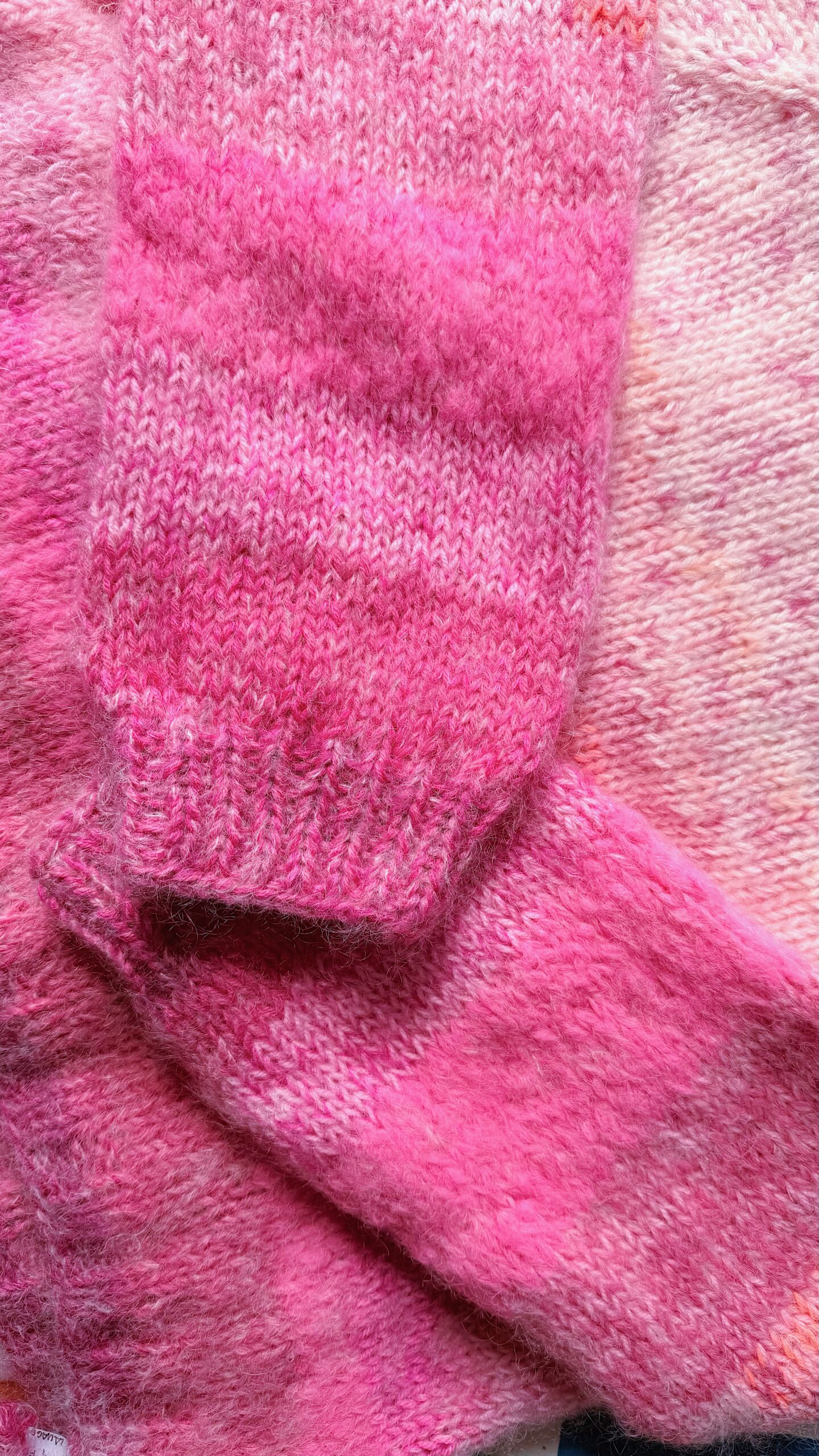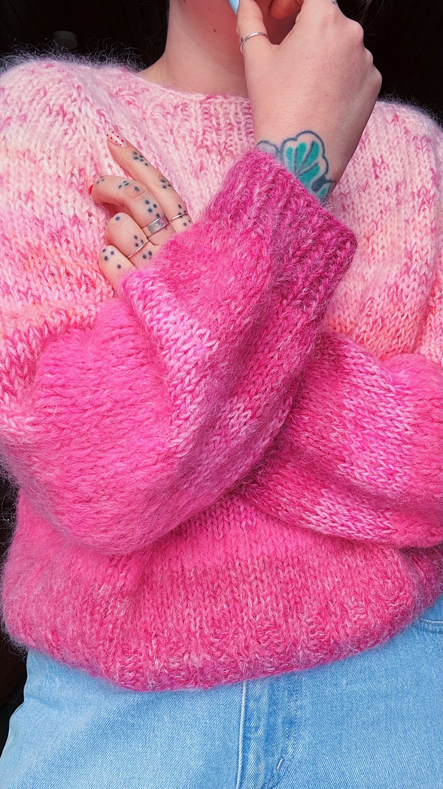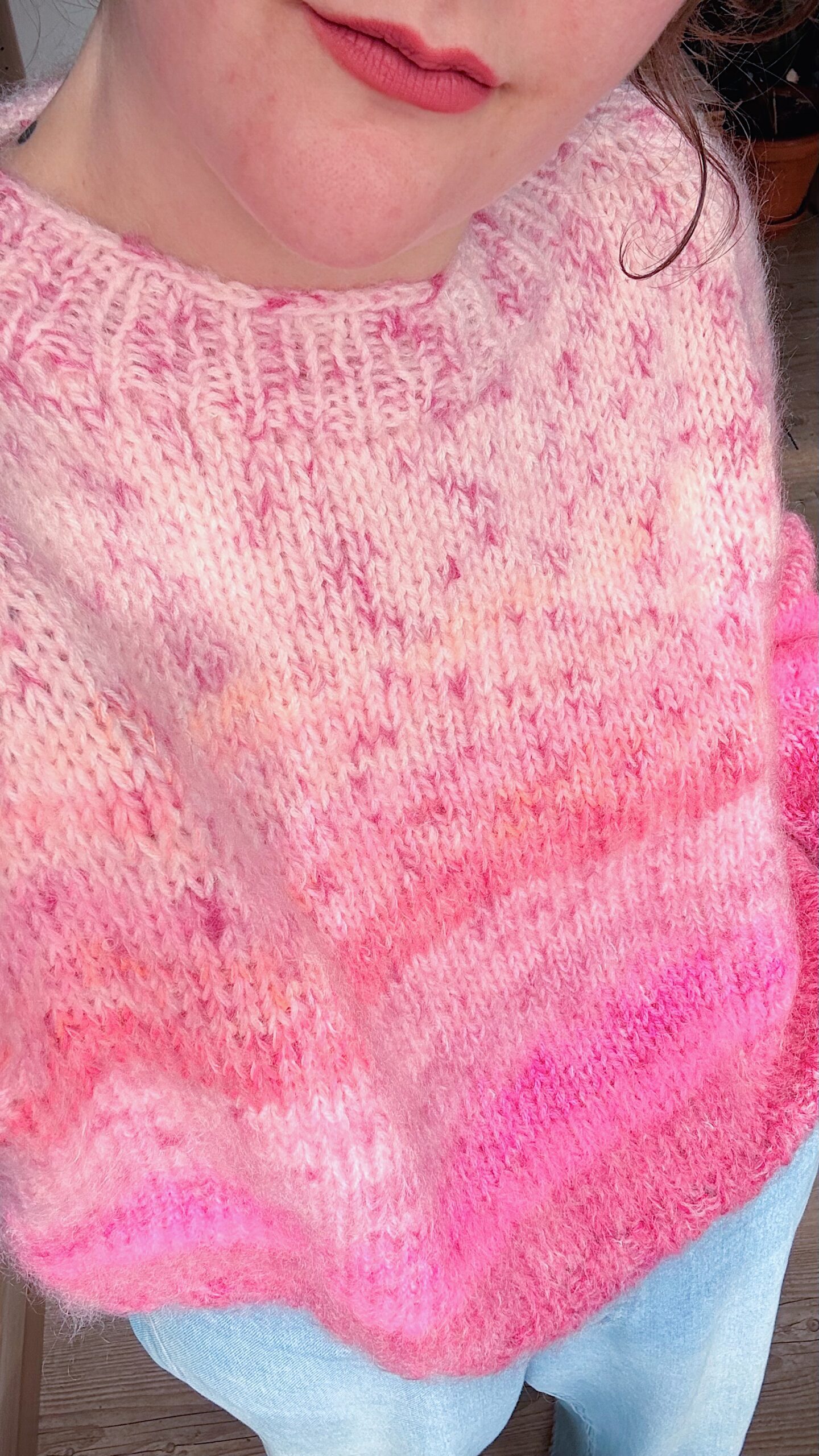 La maille confectionné par ma maman, Anne, en Belgique, à Louvain-la-Neuve, à travers son projet fingersinthewool. Elle retravaille des laines de récupération, après avoir rassemblé suffisamment de pelotes dans les couleurs qui l’inspirent. Ces pièces uniques prennent forme pour des looks toujours plus colorés ! Étant fabriqué à partir de laine de récupération, il est très souvent impossible de retracer précisément la composition d’origine des fils utilisés.