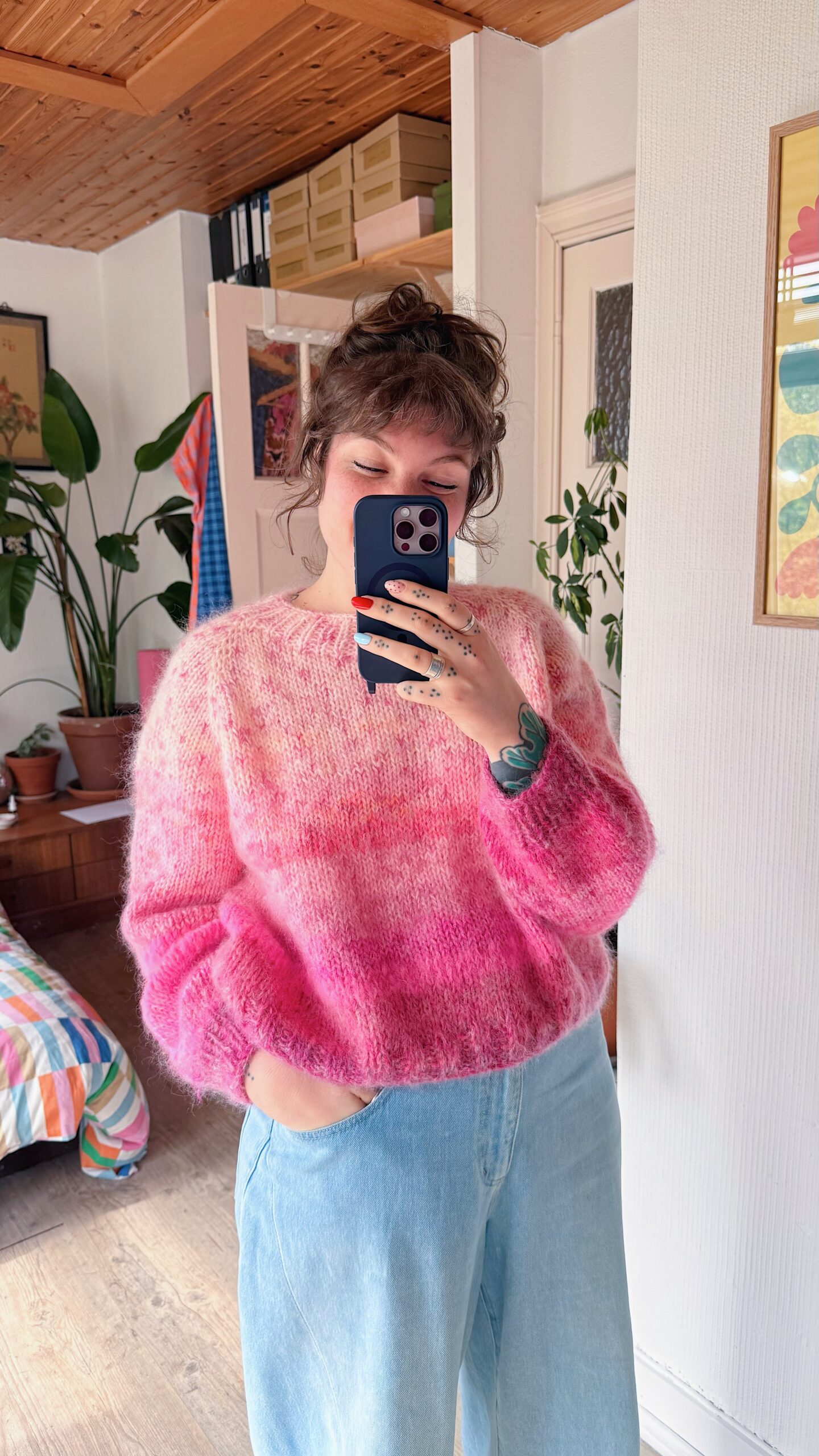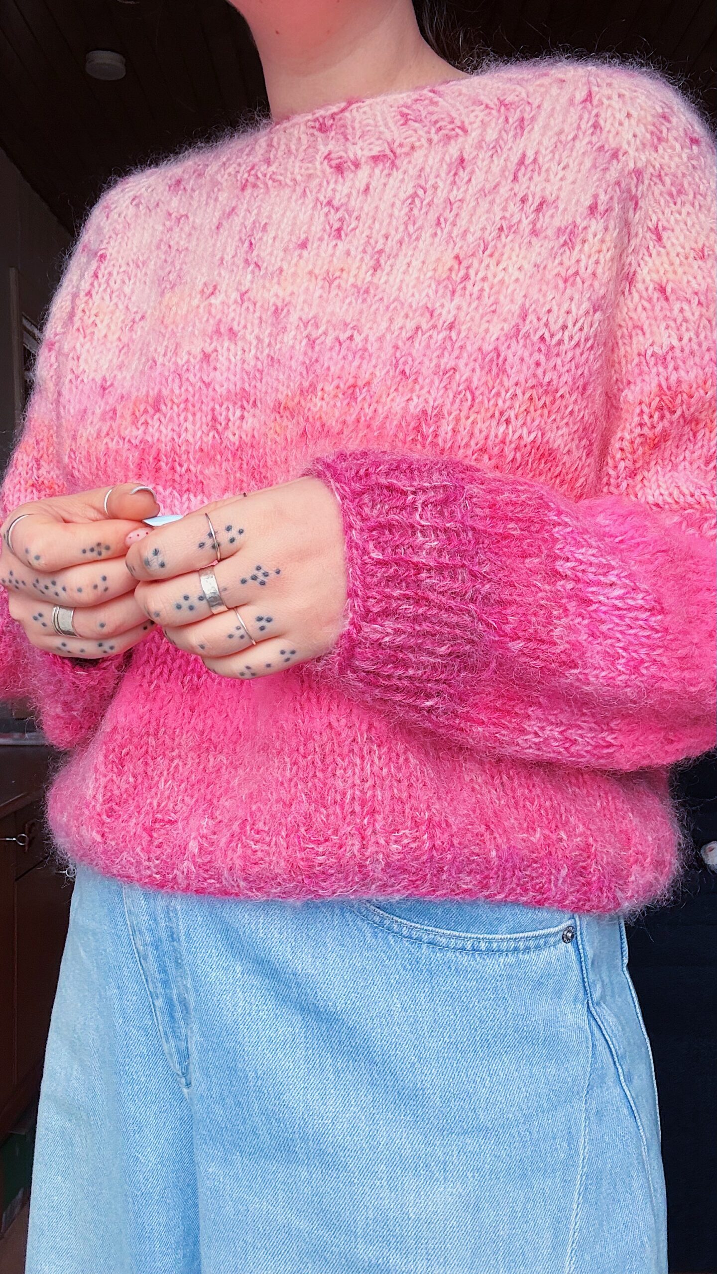 Chaque pull est unique et sa taille peut varier. Même si le modèle reste souvent le même, les laines utilisées sont toujours différentes, ce qui influence directement les dimensions finales.