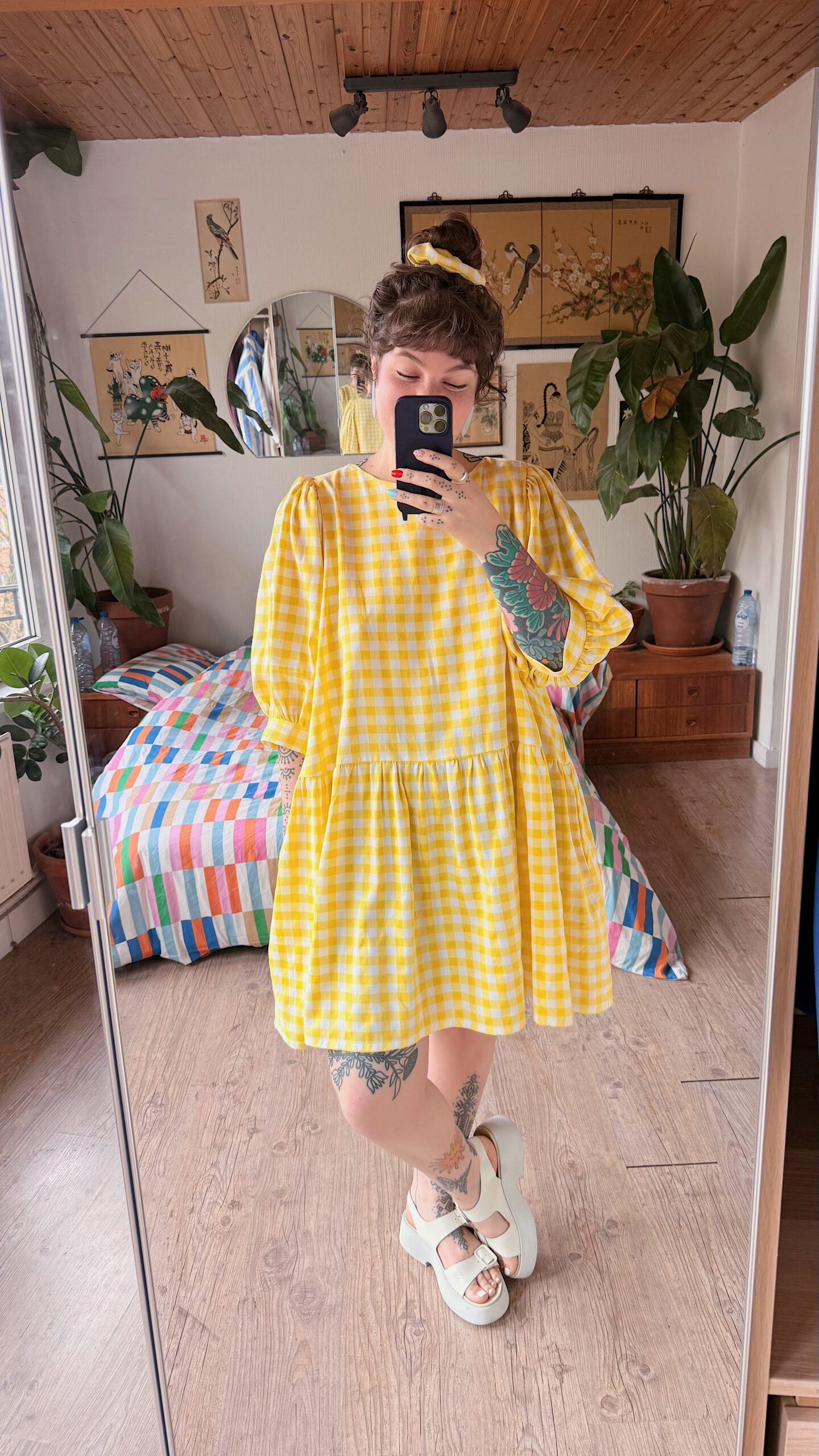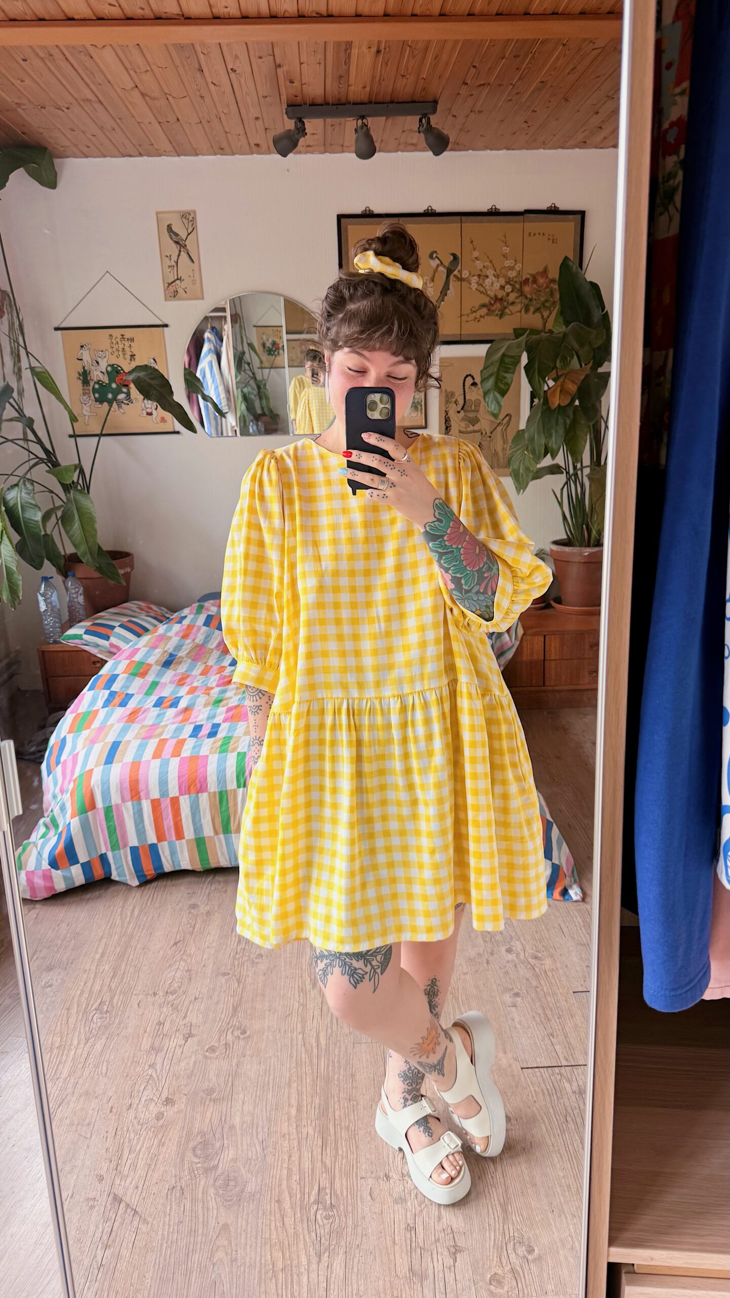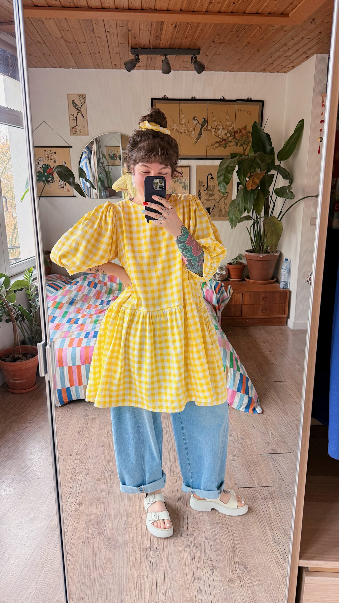La robe Ballon présente une coupe oversize pour un effet ample. Elle s’enfile par la tête, sans fermeture au dos, et est doublée sur le haut du corps pour plus de confort. Ses manches ballon apportent du volume, variable selon l’épaisseur du tissu ♡