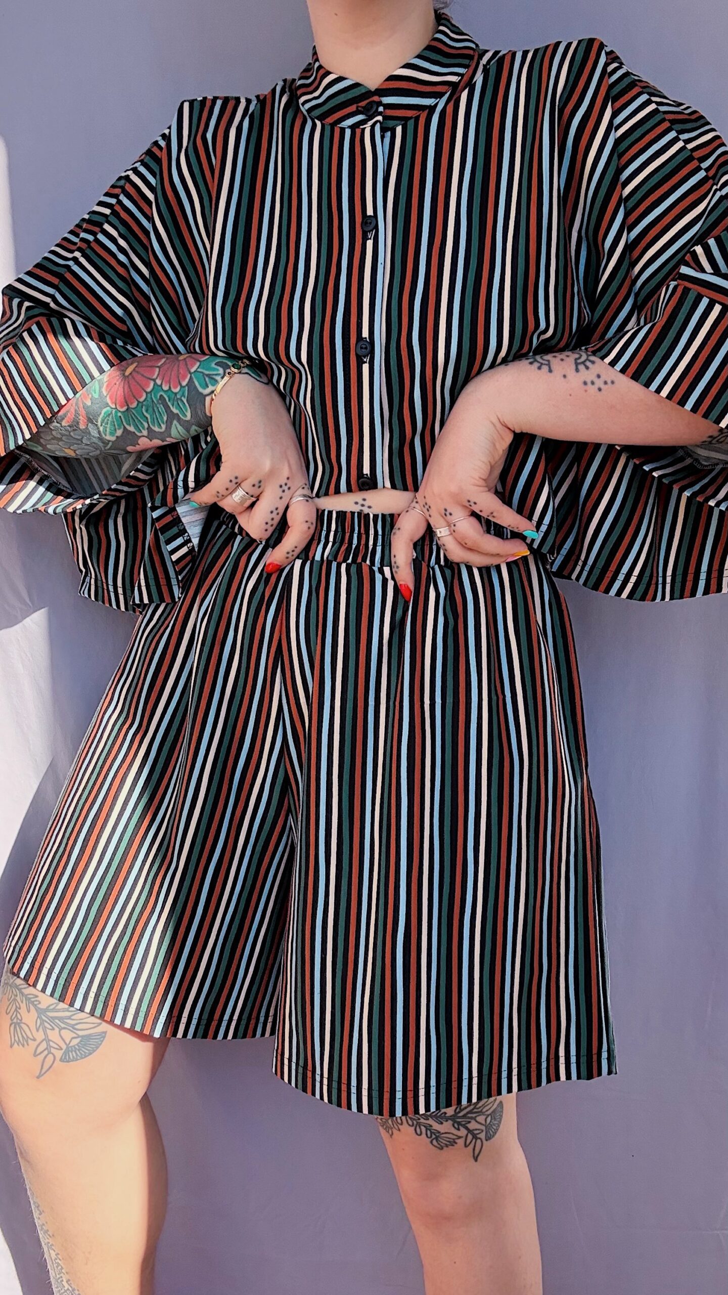Le short ballon est unisexe, oversize et inspiré des coupes japonisantes. Évasé en bas pour un maximum de volume, il est doté d’un élastique à la taille et de deux grandes poches ♡