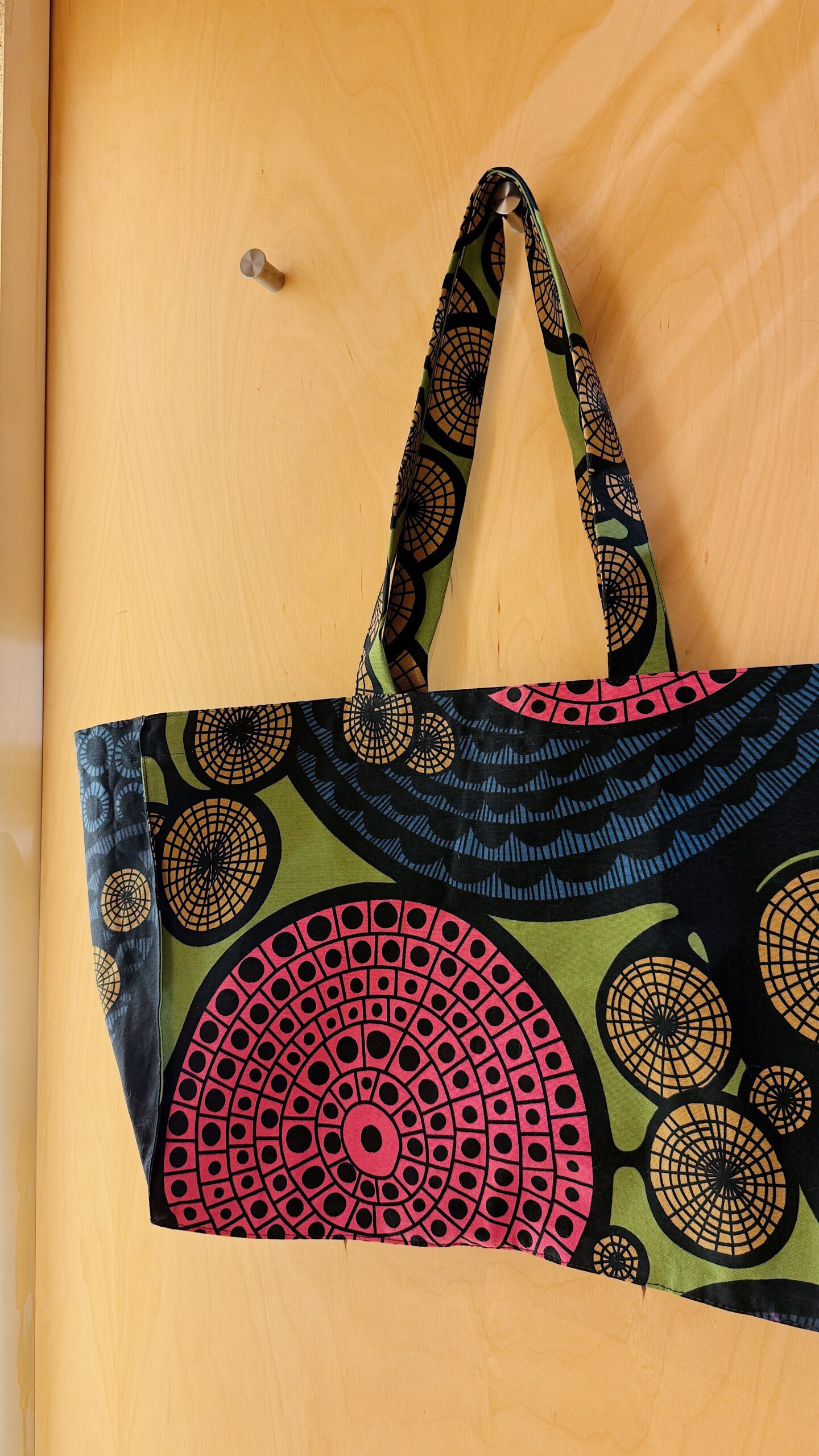 Le grand tote bag est pensé pour t’accompagner au quotidien. Large et long, il permet de transporter facilement de nombreux objets. Les tissus choisis pour ce modèle sont généralement assez épais afin de lui donner de la tenue, tout en restant facile à plier et à glisser dans un sac. Il n’est pas doublé ♡