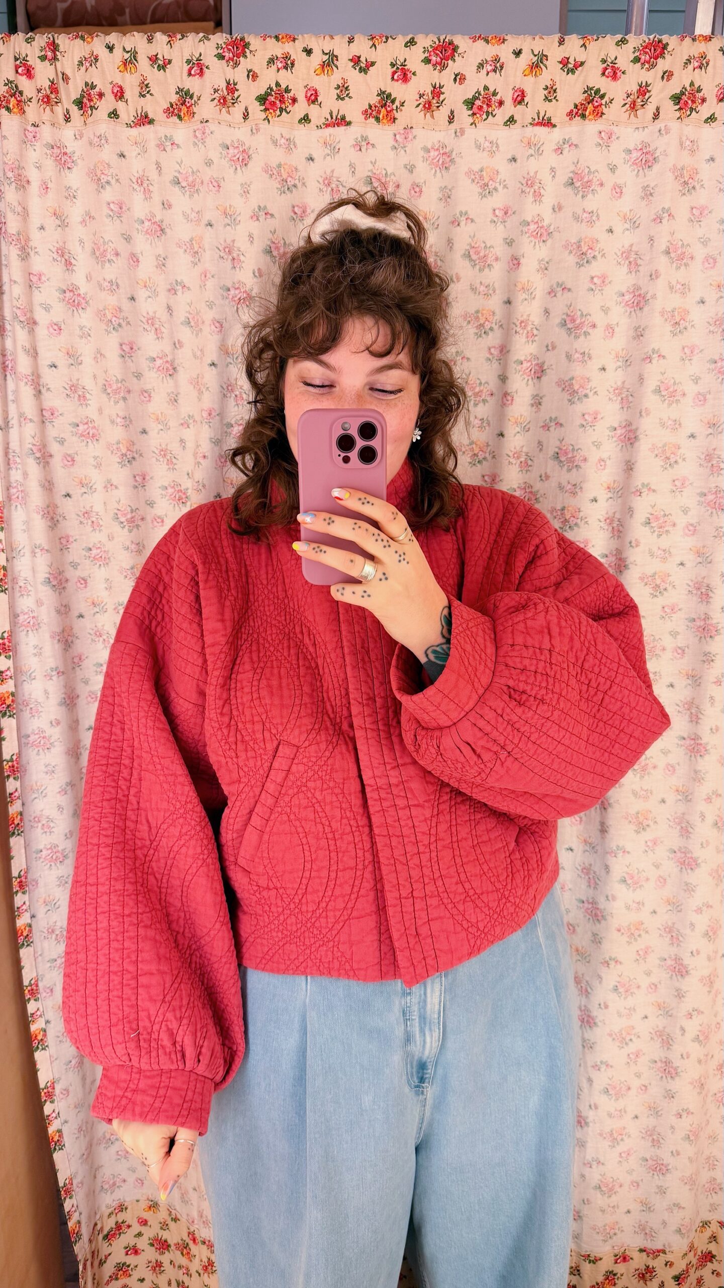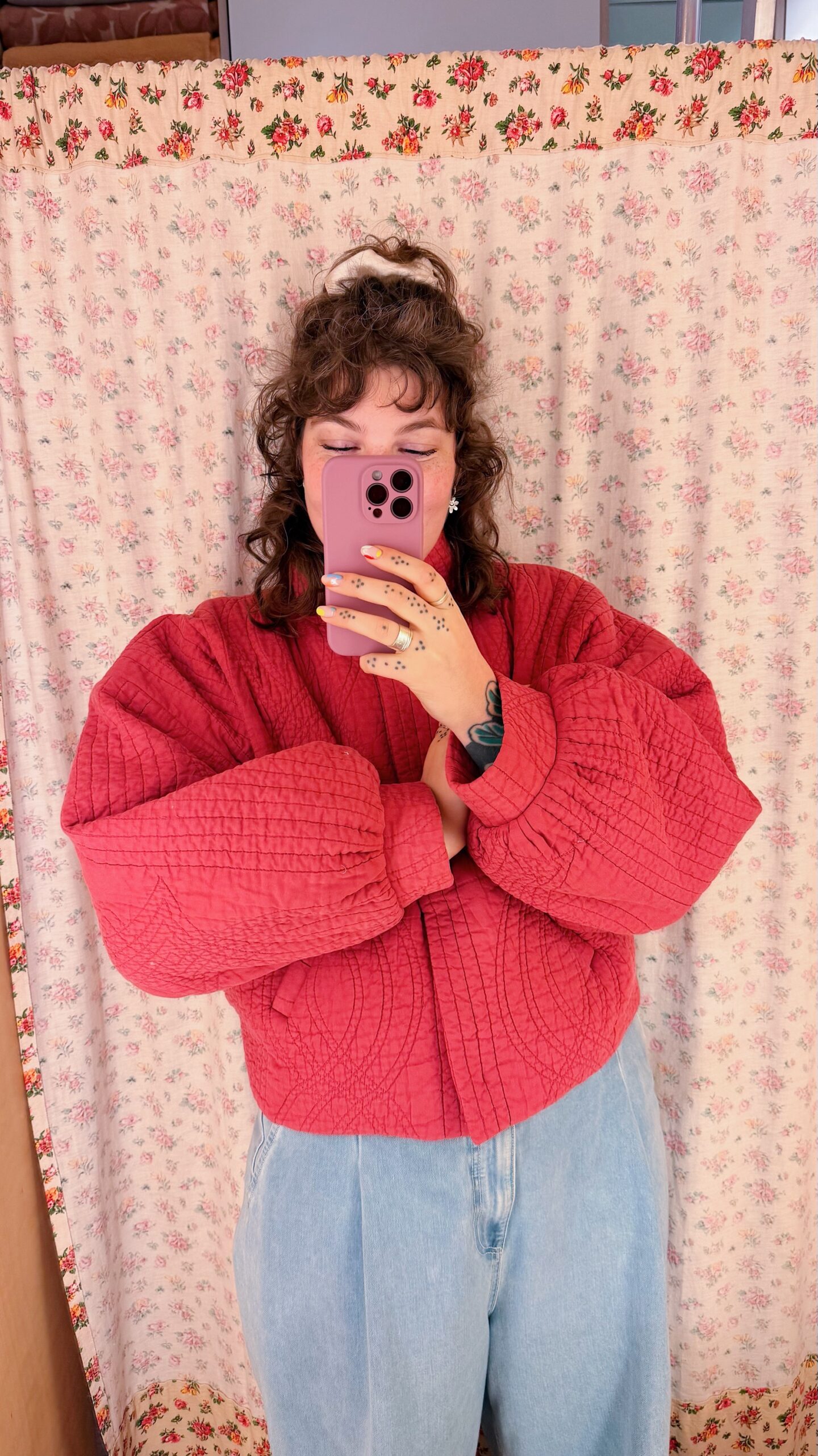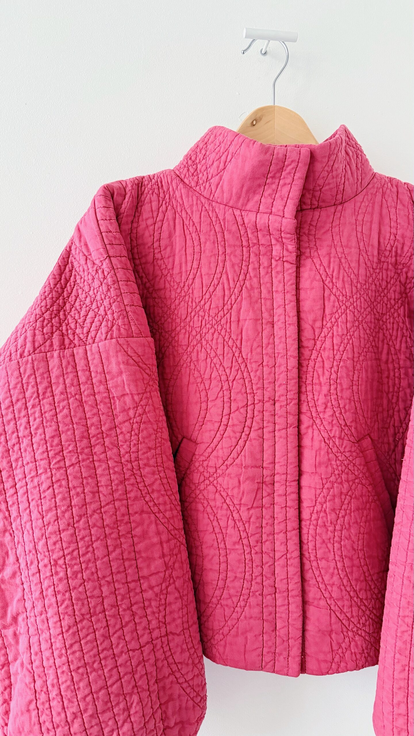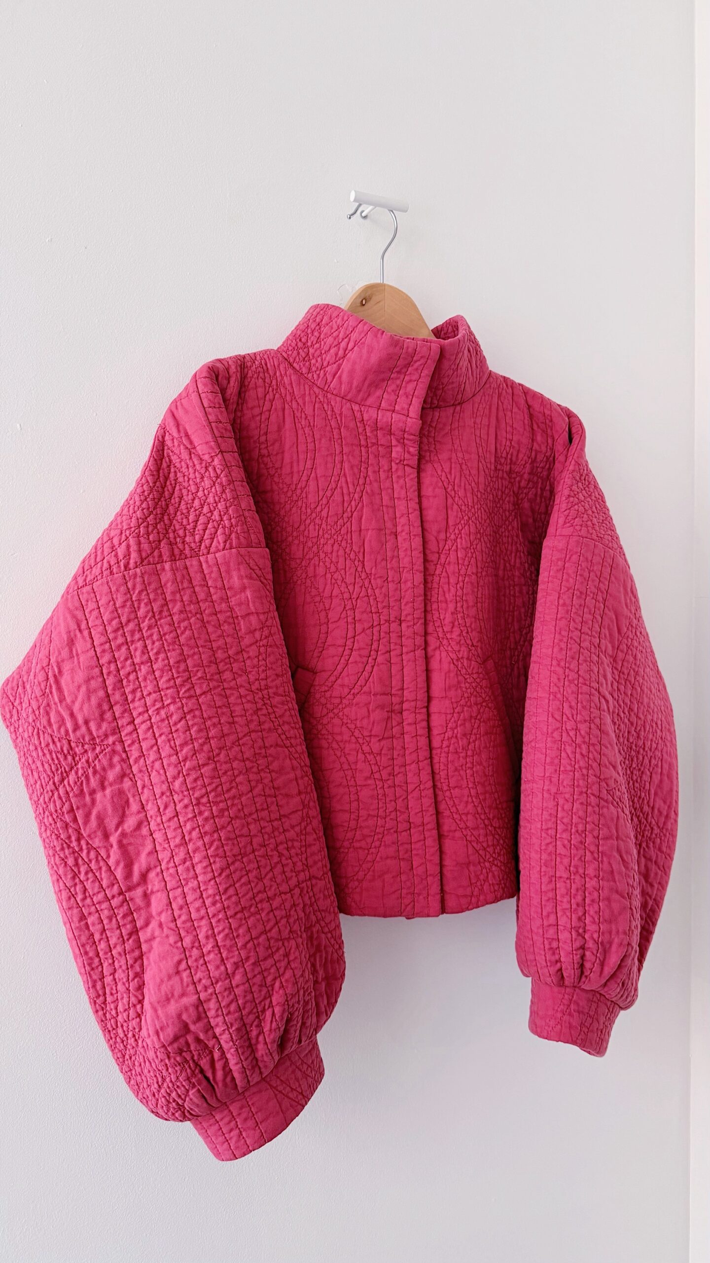 La veste matelassée est équipée d’une doublure et de deux poches, et se ferme à l’aide de boutons-pression. ♡