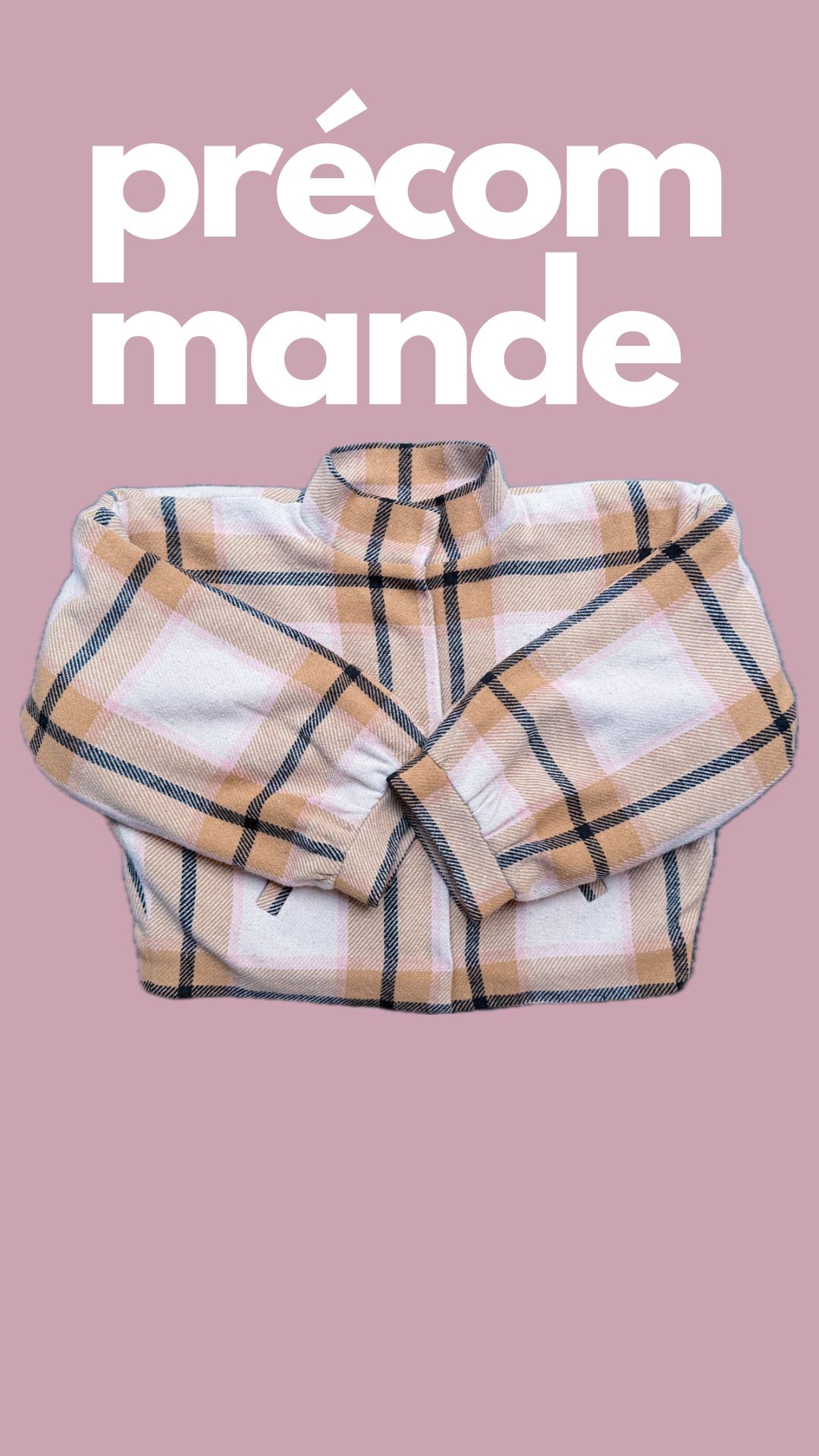 Tu peux choisir la taille et la longueur de ta veste. Je produis le plus souvent la taille 2, longueur 1 (voir tableau des tailles). Si tu préfères une autre taille et que le tissu le permet, fais-le moi savoir avant que la production soit lancée, en me contactant via le formulaire de contact ou sur Instagram.