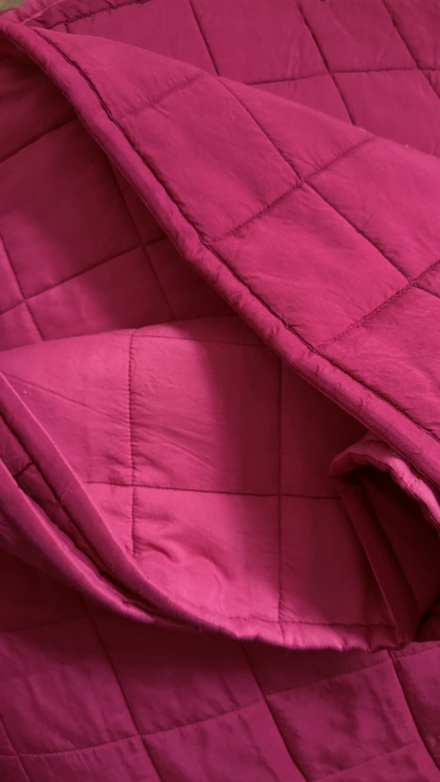 La veste matelassée est équipée d’une doublure et de deux poches, et se ferme à l’aide de boutons-pression ♡