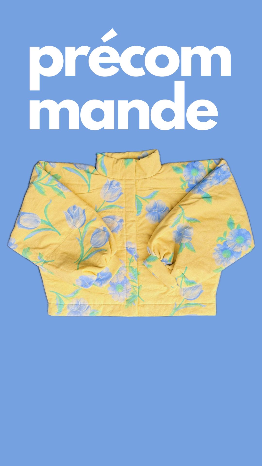 Tu peux choisir la taille et la longueur de ta veste. Je produis le plus souvent la taille 2 longueur 1 et la taille 3 longueur 2 (voir tableau des tailles). Précise en commentaire de ta commande la taille souhaitée ; s’il n’y a pas assez de tissu pour la réaliser, tu seras automatiquement contacté·e et remboursé·e. Il est idéal de me préciser ta taille, car cela me permettra de savoir s’il est pertinent de rallonger ou raccourcir les manches (ex. : je mesure 1,70 m et je fais une taille L). C’est encore mieux si tu connais tes mensurations en cm : contour poitrine, taille et hanches.