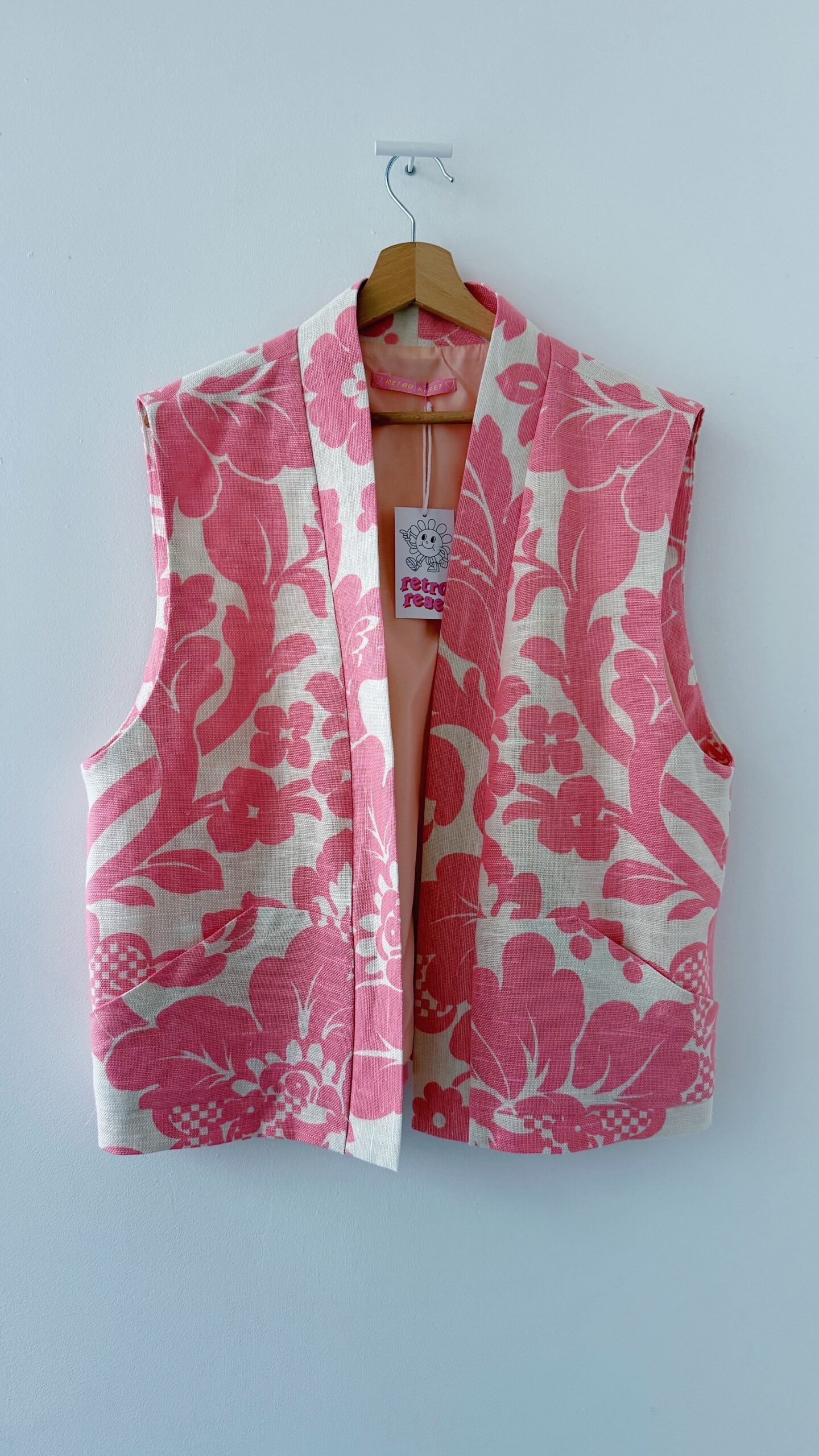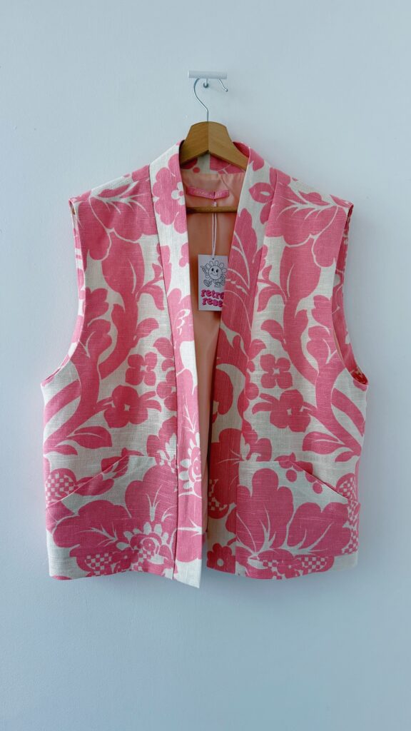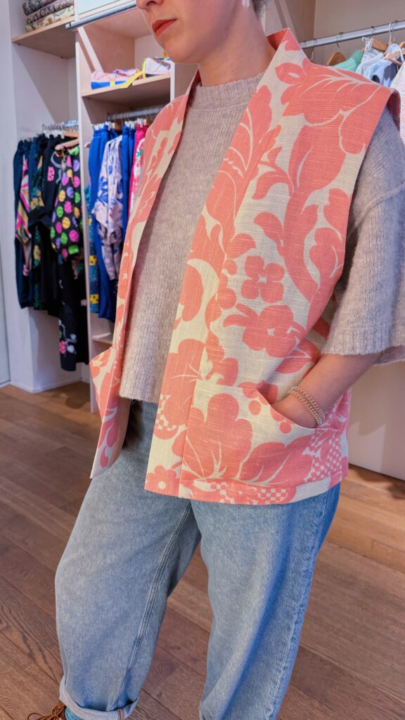 Les vestes sans manches sont réalisées à partir d’anciens tissus, ce qui leur donne un caractère unique !