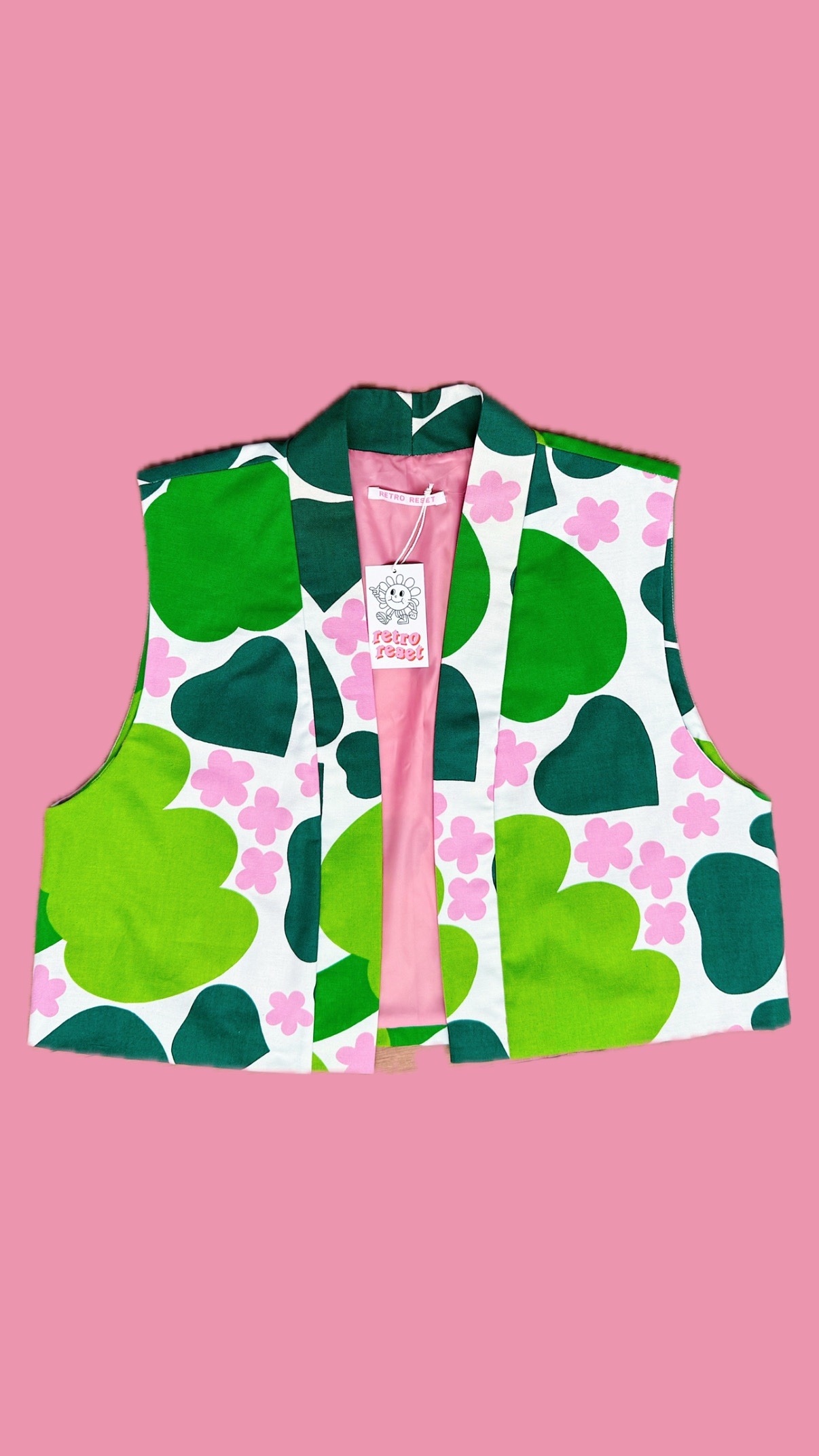 La veste sans manches avec son encolure kimono est une coupe oversize, avec une emmanchure large, idéale à porter avec la blouse ballon Retro Reset, un gros pull ou une chemise à manches bouffantes ! Le modèle est doublé.