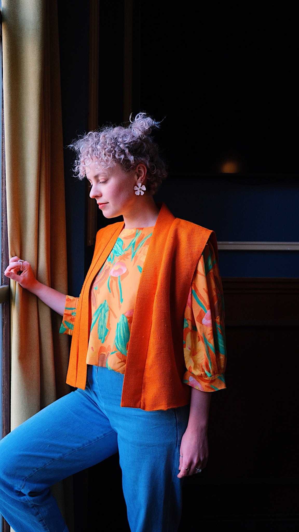 La veste sans manches avec son encolure kimono est une coupe oversize, avec une emmanchure large, idéale à porter avec la blouse ballon Retro Reset, un gros pull ou une chemise à manches bouffantes ! Le modèle est doublé.