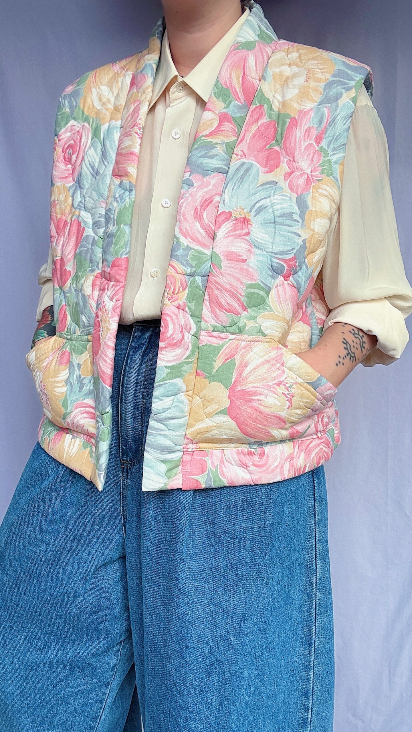Les vestes sans manches sont réalisées à partir d’anciens tissus, ce qui leur donne un caractère unique !