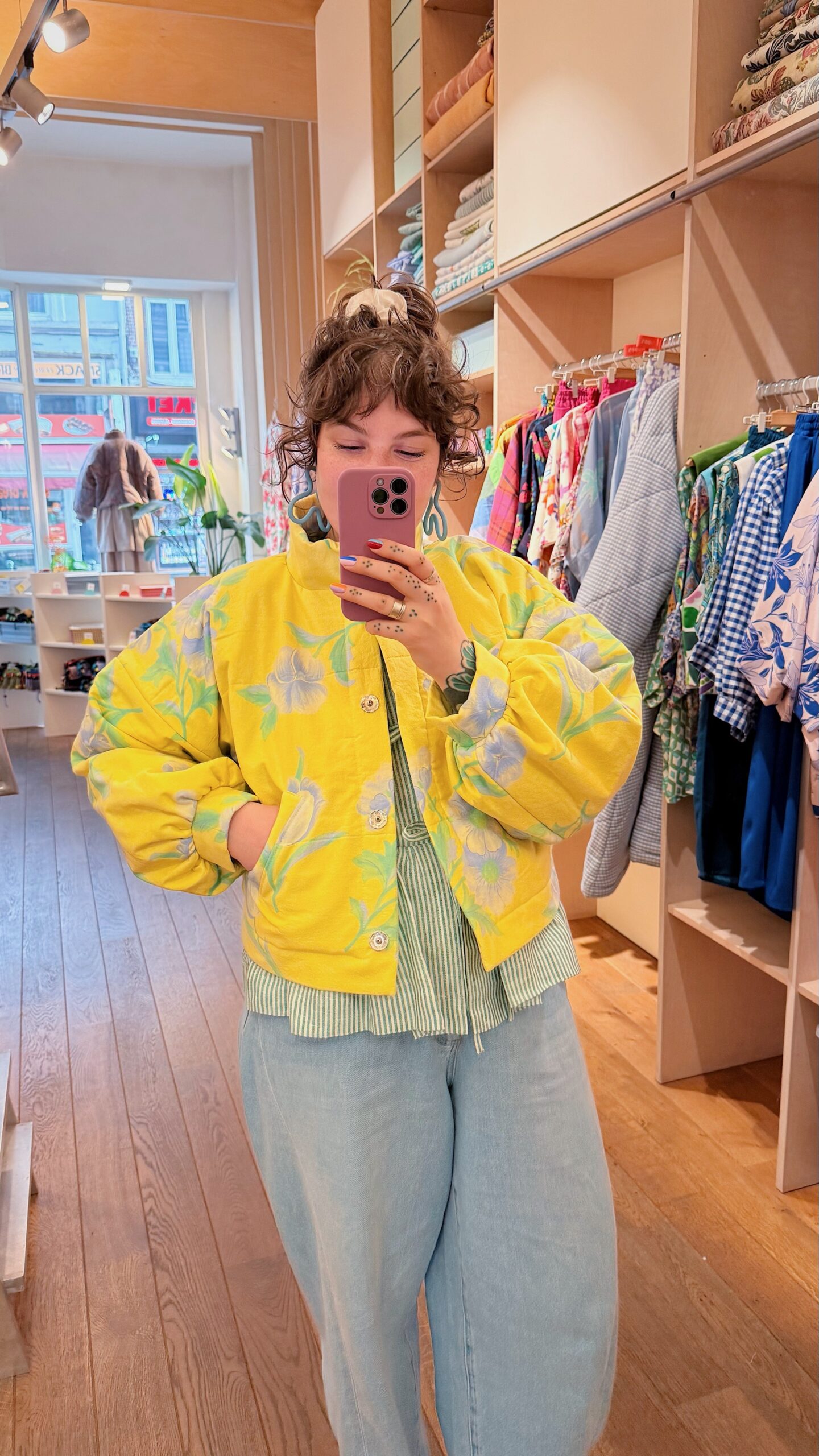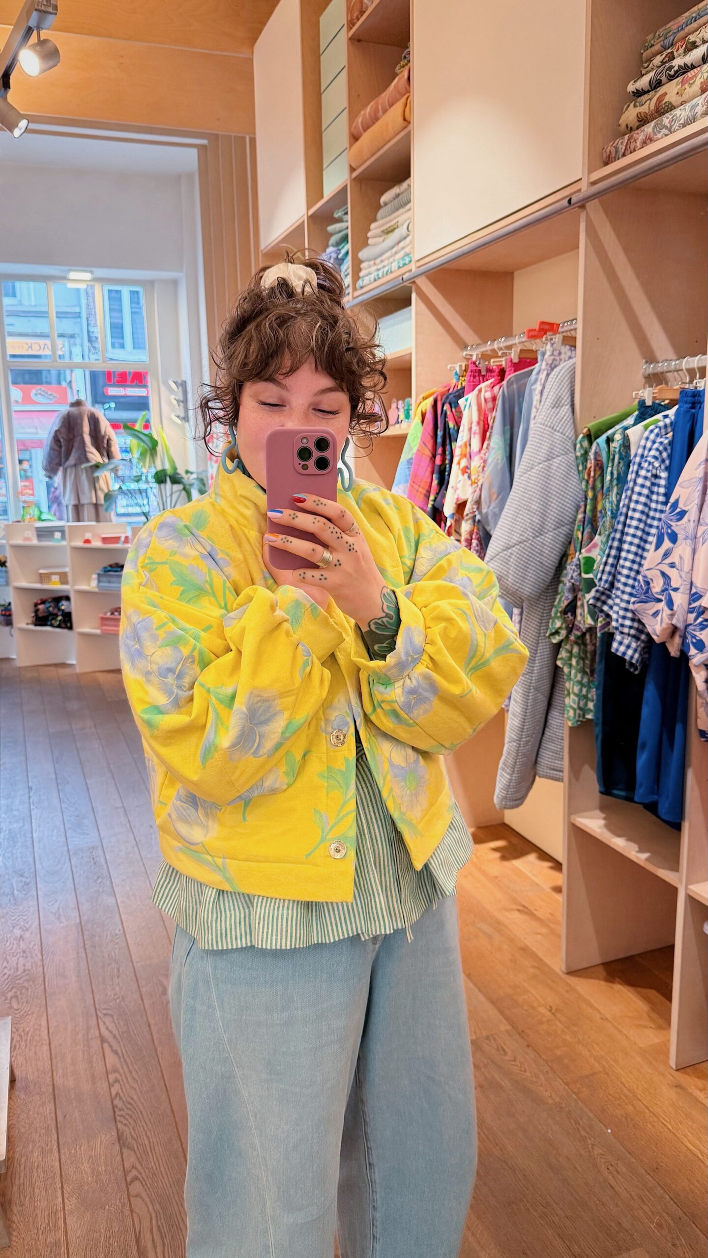 La veste matelassée est équipée d’une doublure et de deux poches, et se ferme à l’aide de boutons-pression. ♡