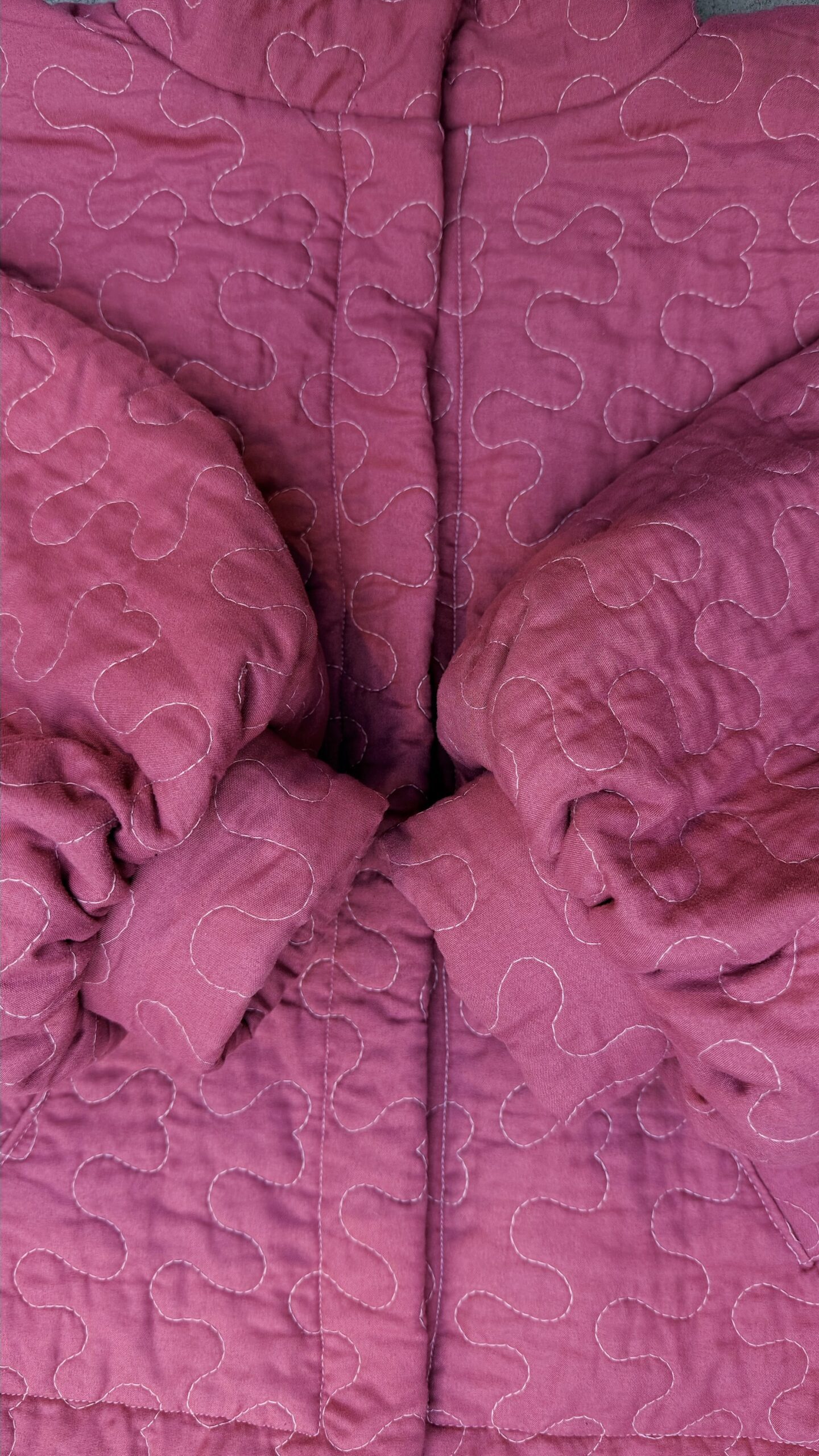La veste matelassée est équipée d’une doublure et de deux poches, et se ferme à l’aide de boutons-pression. ♡